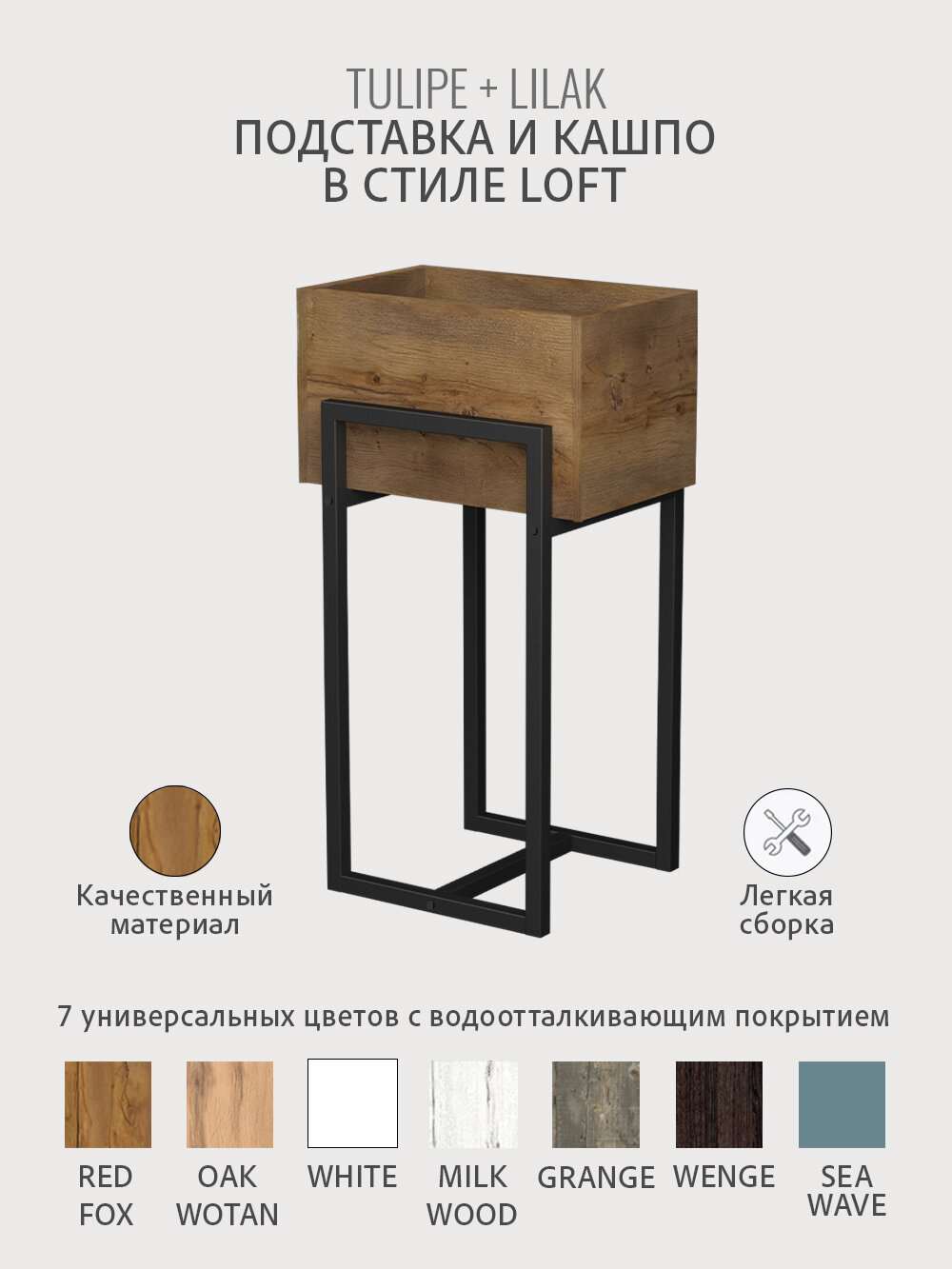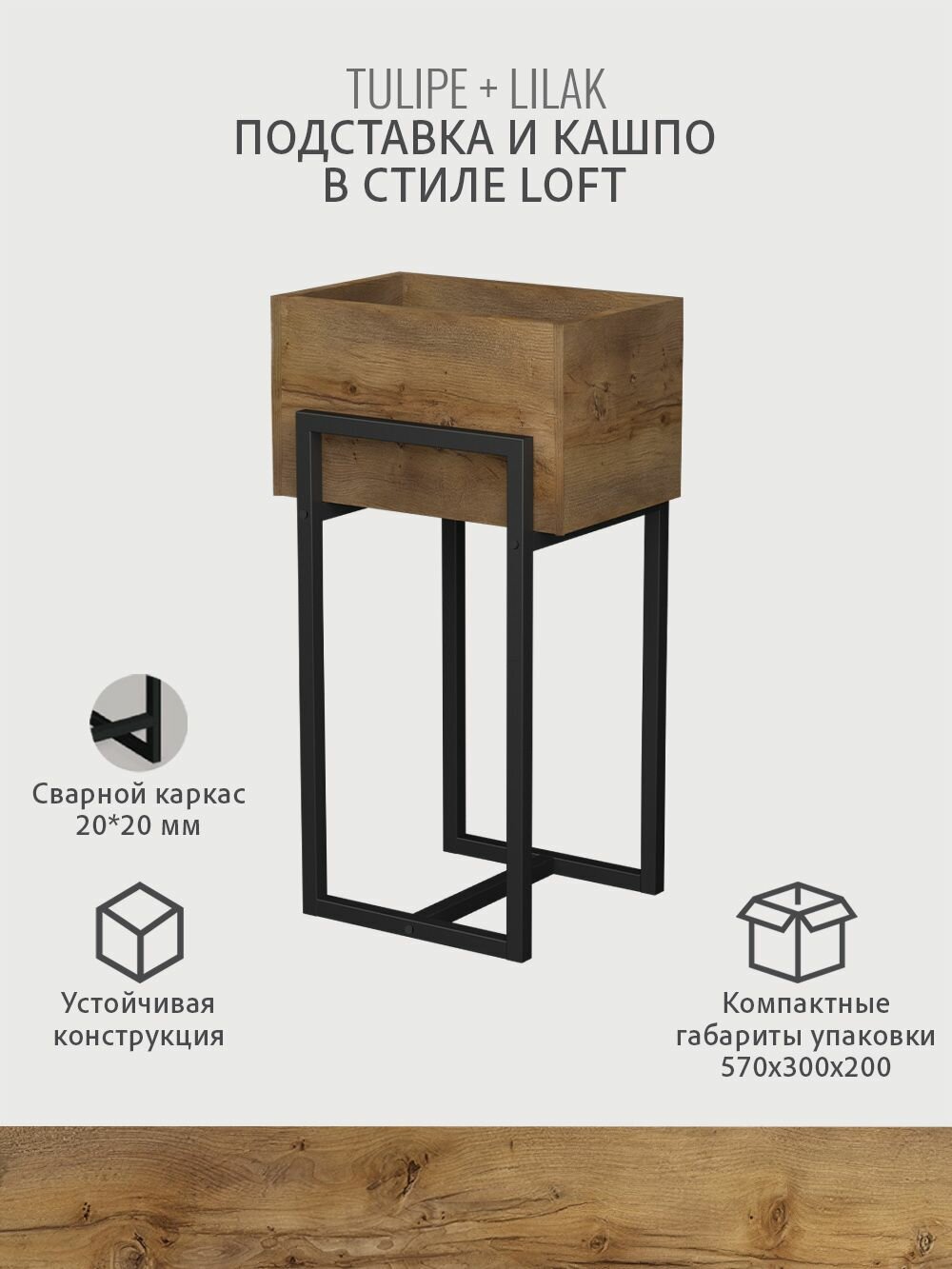 Кашпо напольное на ножках TULIPE loft, горшок для цветов, дуб вотан, 37.2*29*65.6 см, гростат 5 900 ₽