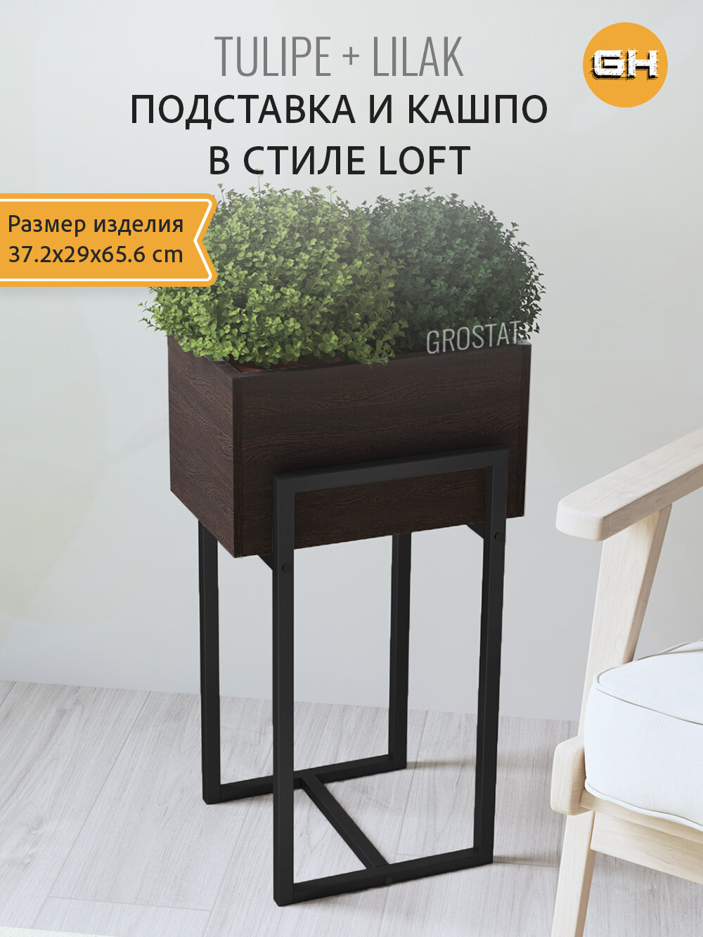 Отзывы на Кашпо напольное на ножках TULIPE loft, горшок для цветов, темно-коричневый, 37.2*29*65.6 см, гростат