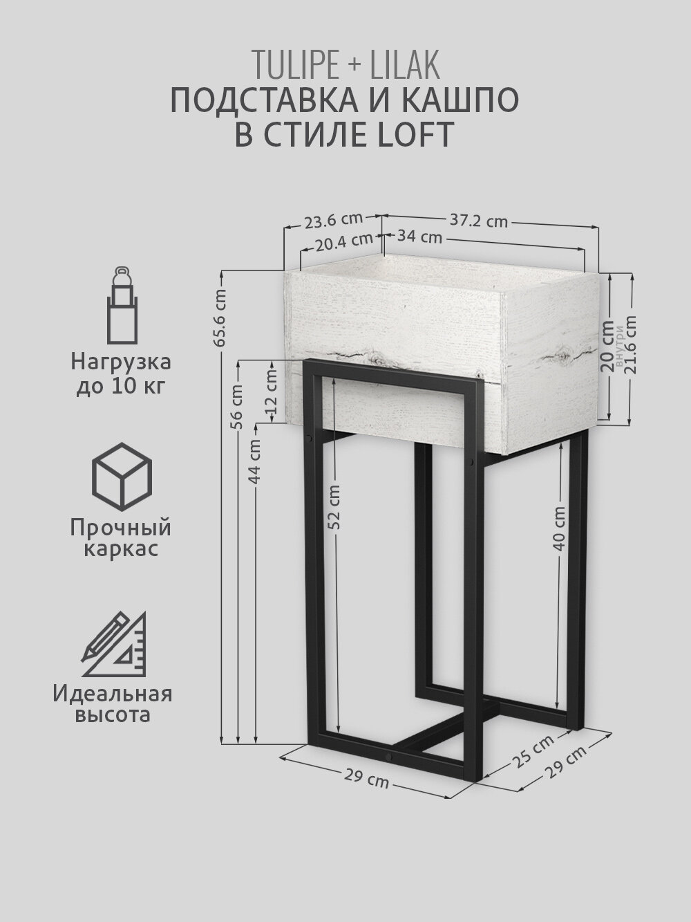 Кашпо напольное на ножках TULIPE loft, горшок для цветов, светло-серый, 37.2*29*65.6 см, гростат информация: