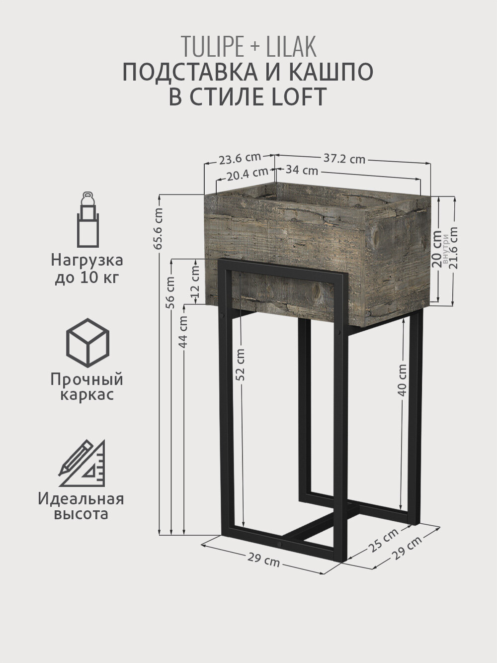 Кашпо напольное на ножках TULIPE loft, горшок для цветов, серый, 37.2*29*65.6 см, гростат информация: