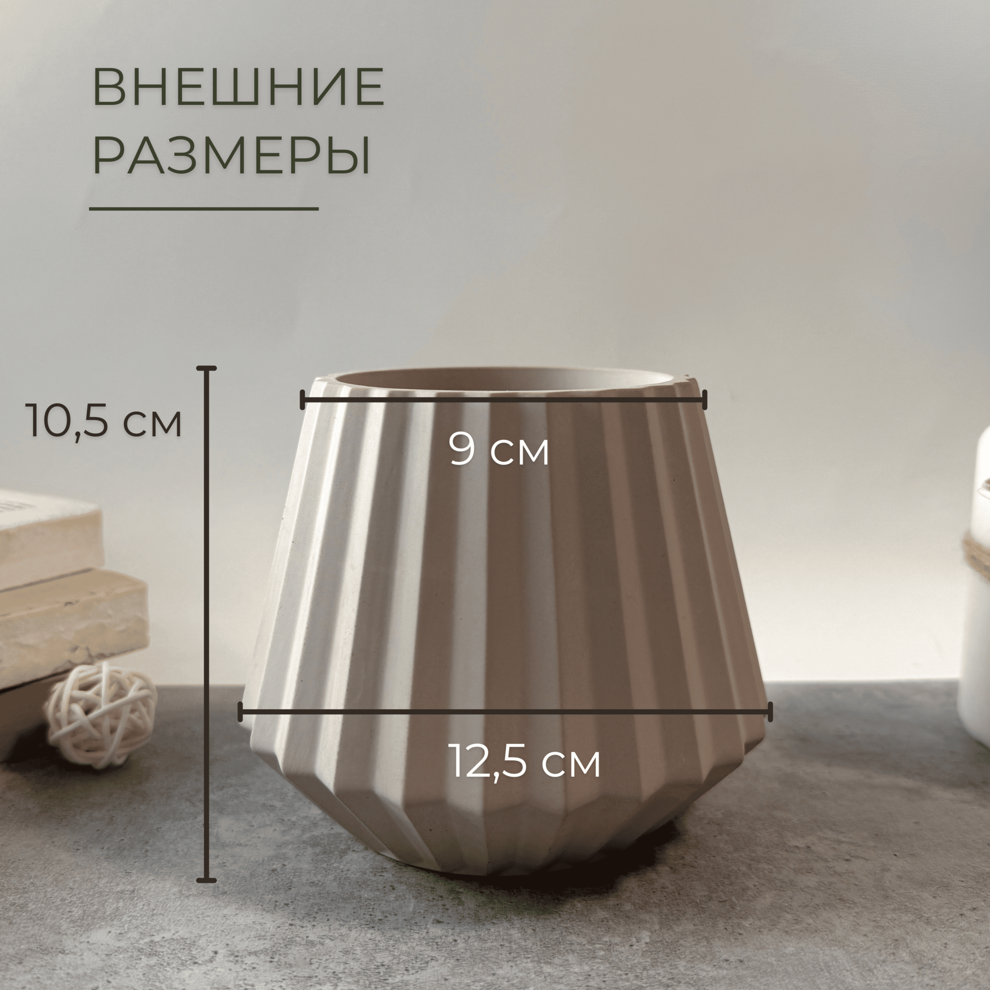 Цветочный горшок для цветов, кашпо для суккулентов, 12,5 х 10,5 см, бежевый, 500 мл, ручная работа, гипс, бетон информация: