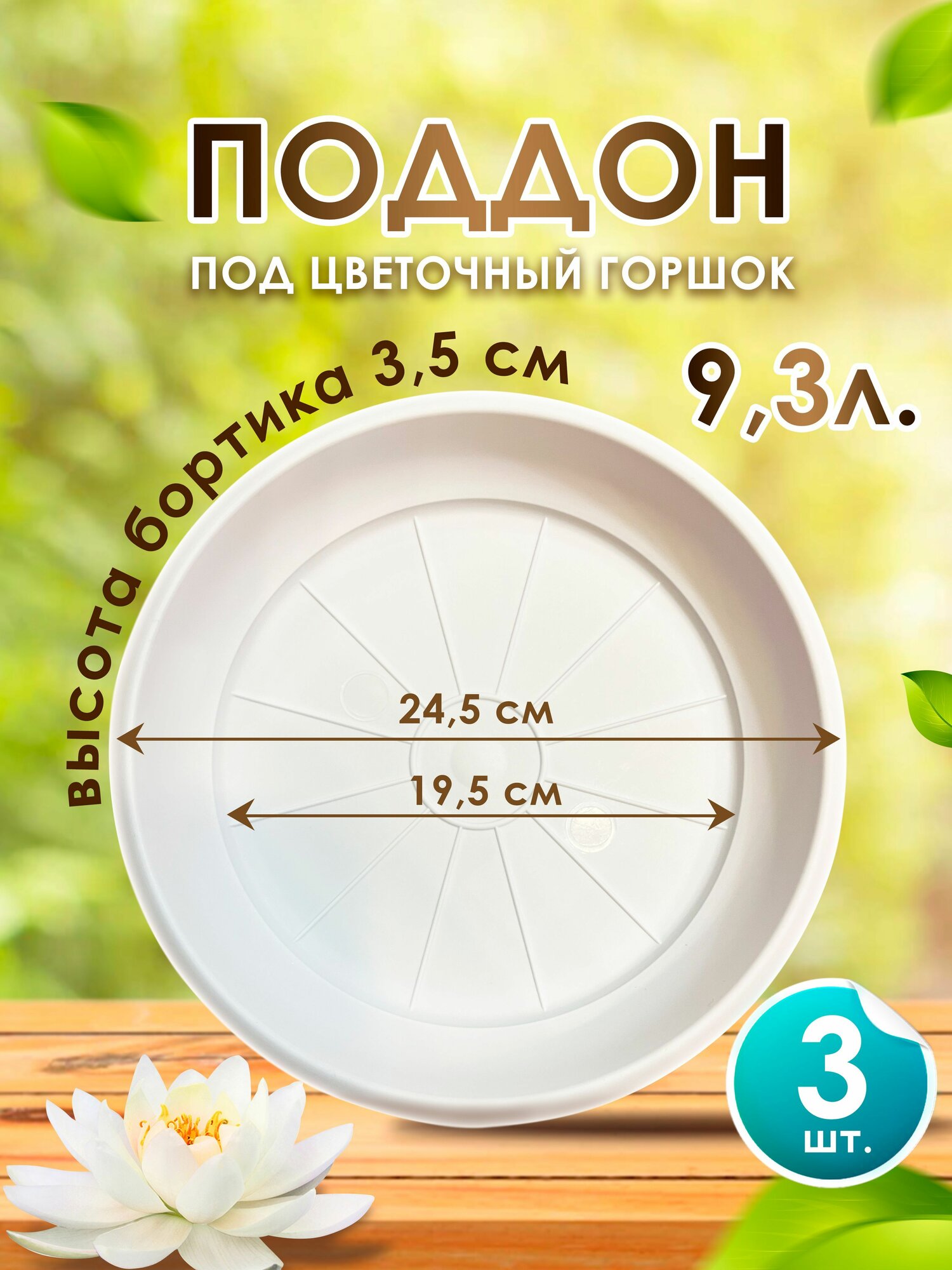 Поддон_подставка для цвеочного горшка _кашпо ,9,3 л пластик d 24.5 см/белый -3 шт. информация: