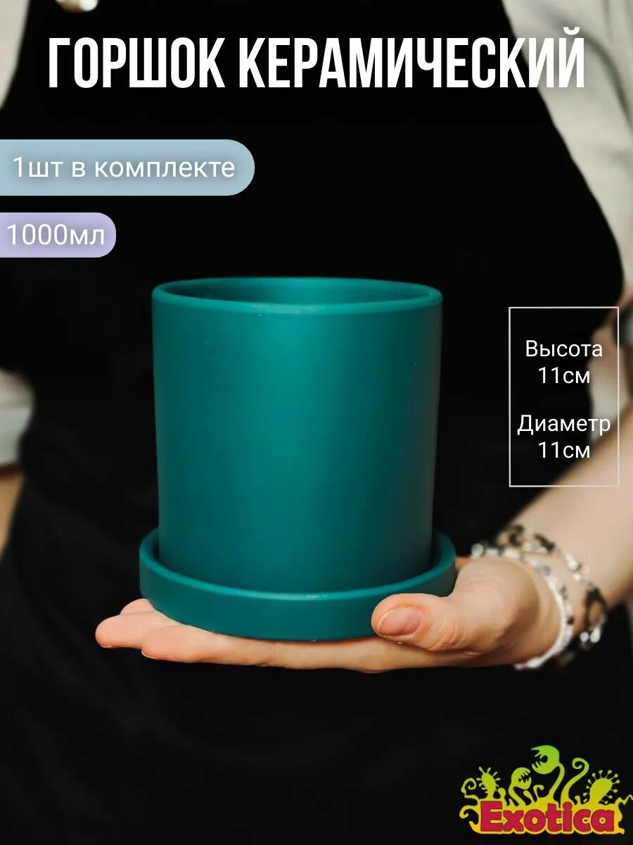 Горшок керамический темно - бирюзовый D11, V1л (с поддоном) информация:
