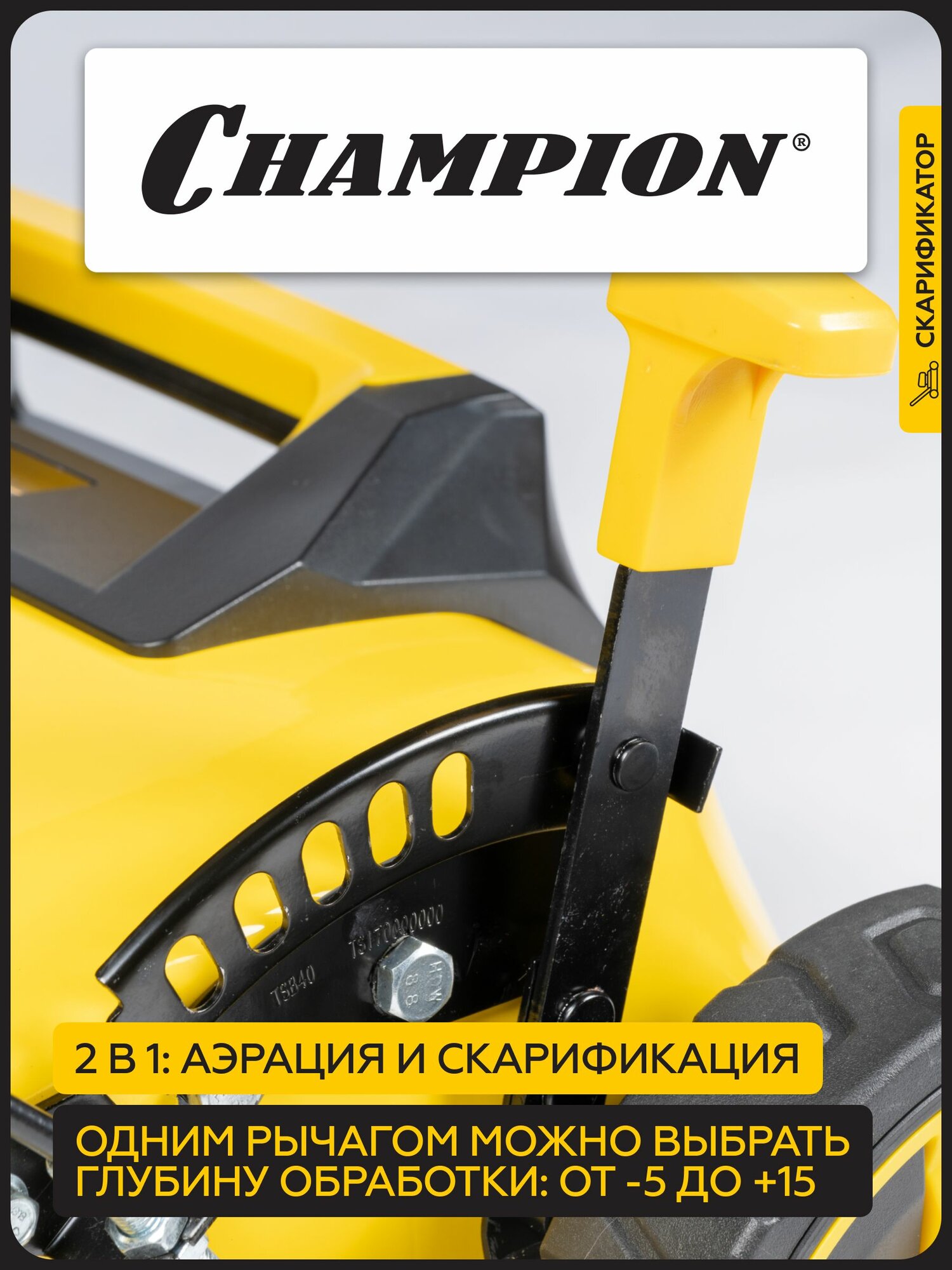 Скарификатор аэратор для газона бензиновый CHAMPION GSC4840, 5,15 кВт, 40 см, с травосборником, с функцией аэратора информация: