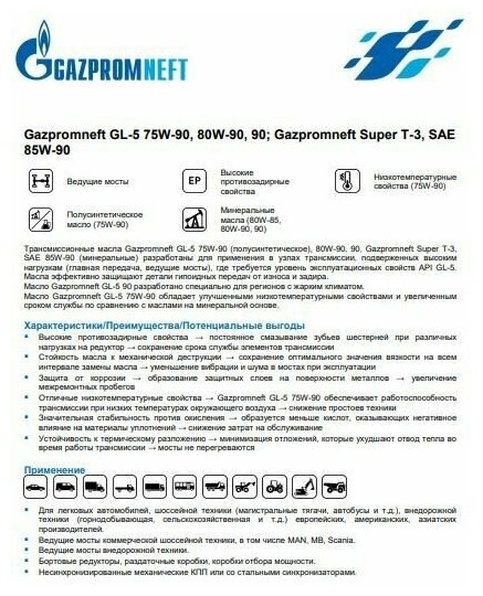 Масло Трансмиссионное Gazpromneft арт. 2389901363 1 018 ₽