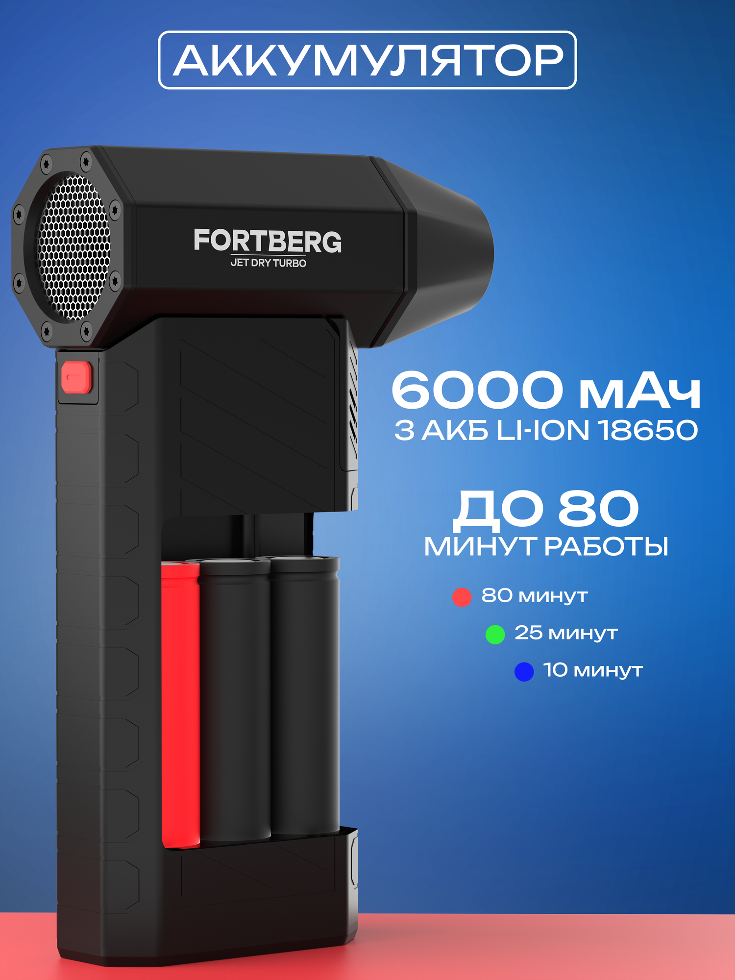 Воздуходувка портативная "Турбовентилятор", черная, Li-ion, 52м/с, 2 аккумулятора