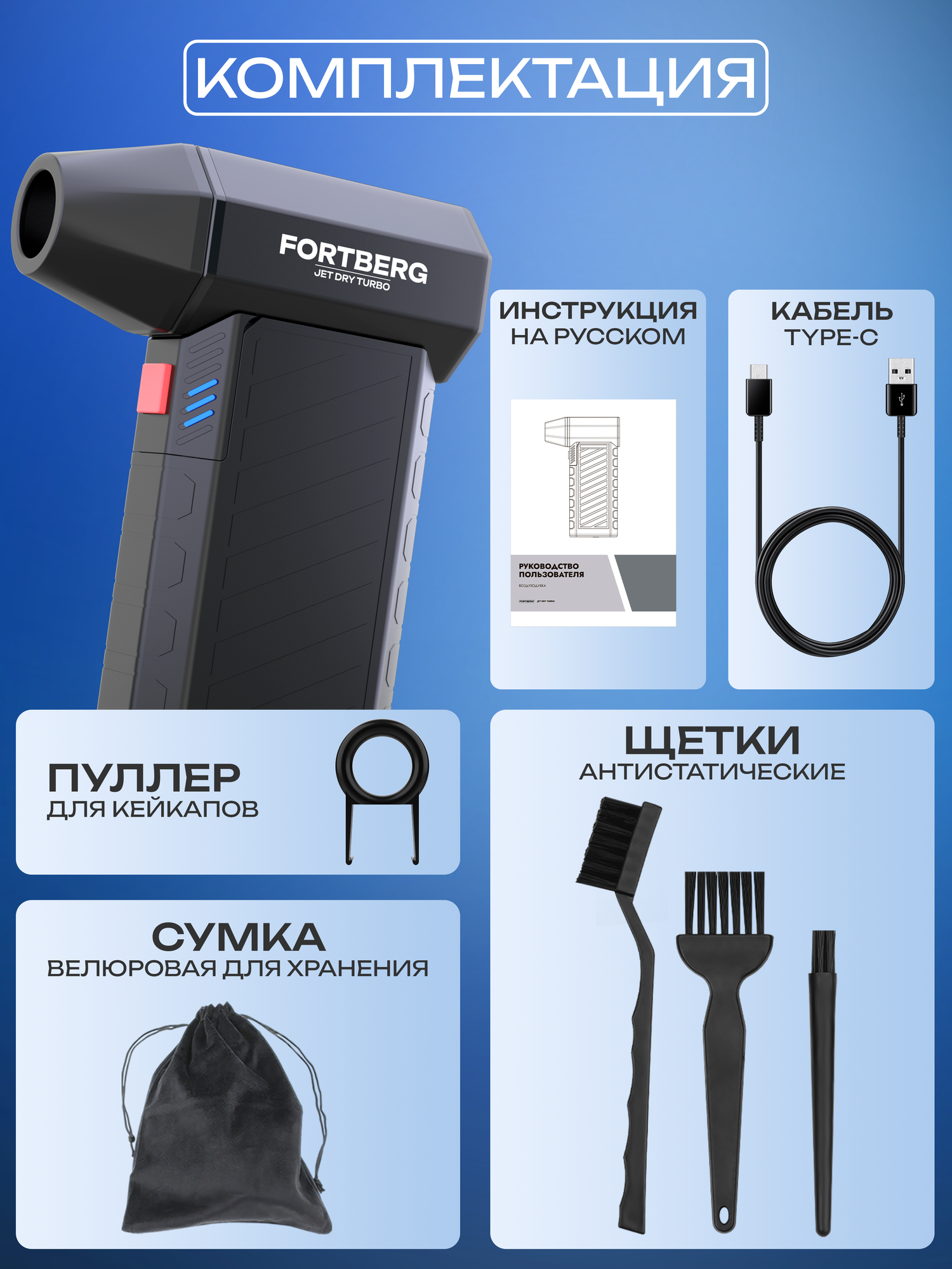 Сверхмощная воздуходувка для компьютера/электроники. Аккумуляторная, 51000об./мин, 68Вт