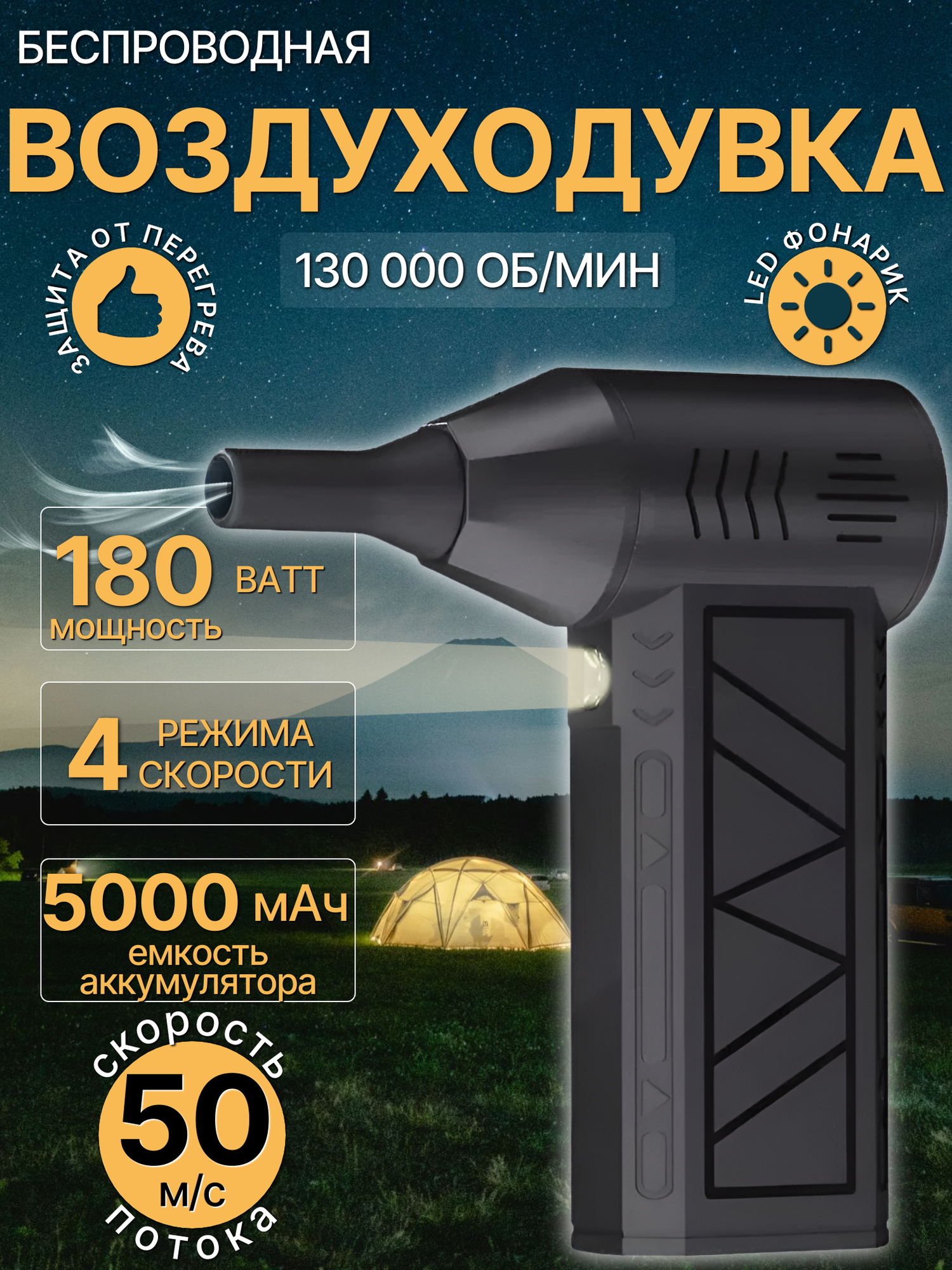 Воздуходувка портативная аккумуляторная / турбовентилятор, 130000 об/мин информация: