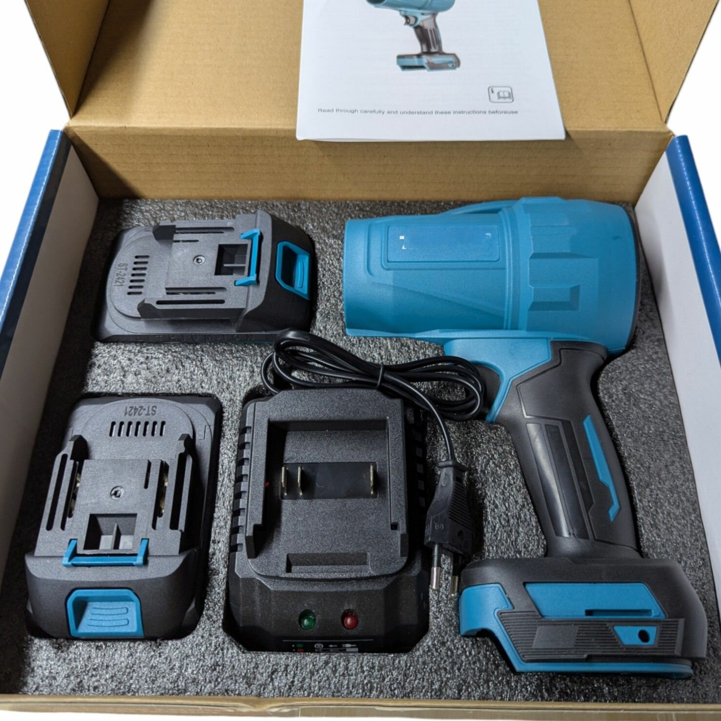 Воздуходувка портативная "Турбовентилятор", черная, Li-ion, 52м/с, 2 аккумулятора