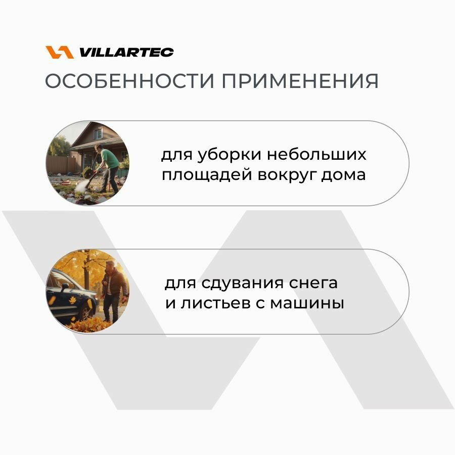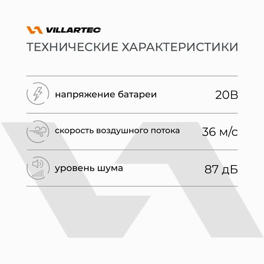 Воздуходувка аккумуляторная 20 В VILLARTEC BA20SET (+ аккумулятор 2 А/ч + зарядное устройство) информация: