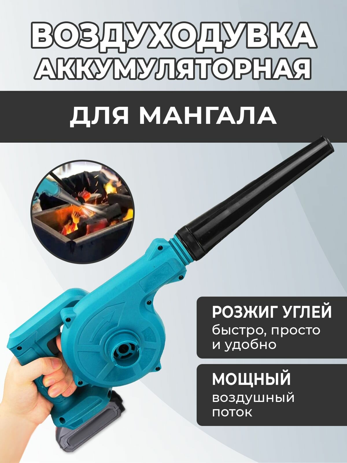 Аккумуляторная воздуходувка для мангала, 1500 Вт, аккумулятор в комплекте информация: