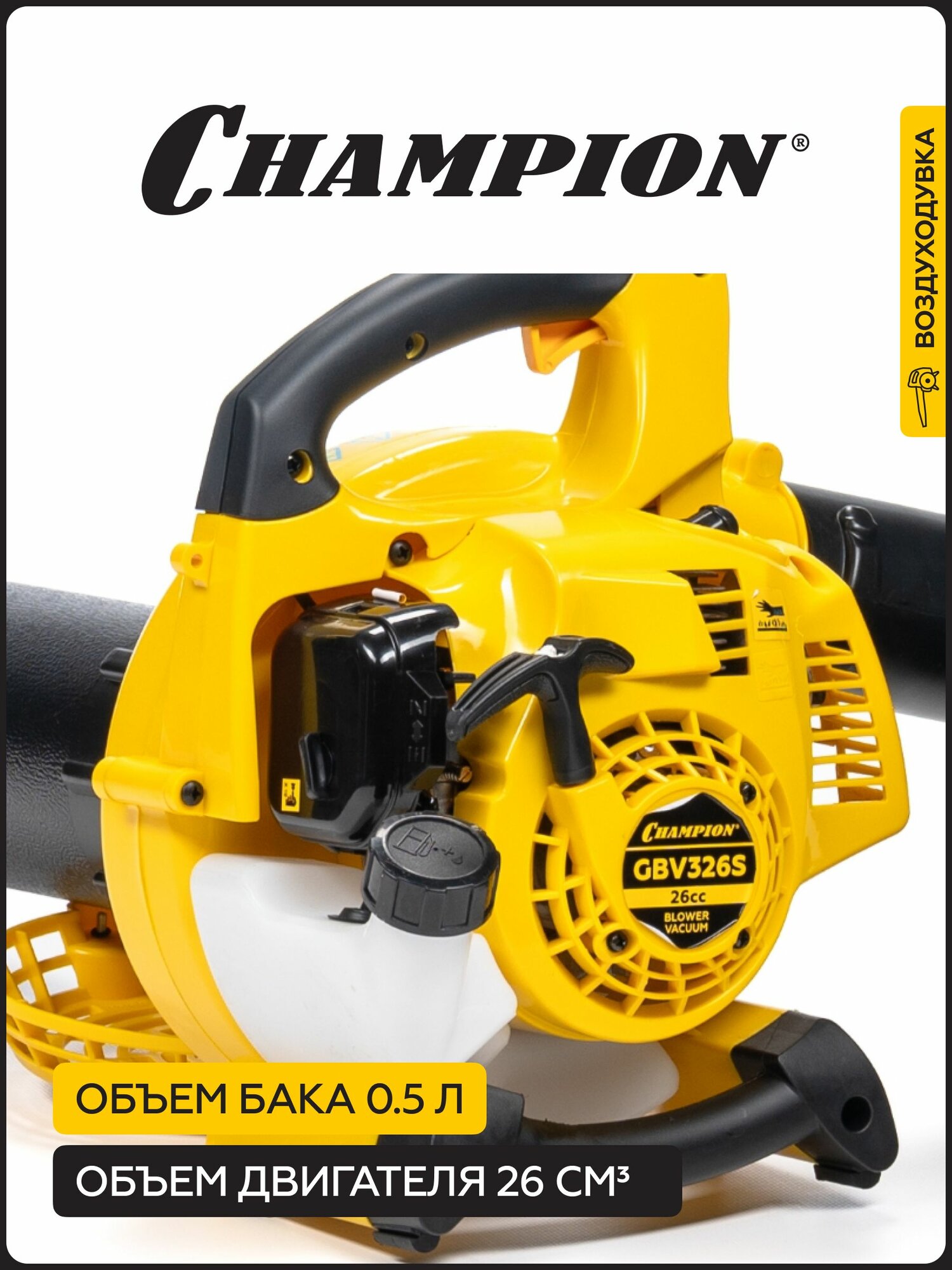 Воздуходувка-измельчитель бензиновая CHAMPION GBV326S, 0,75 кВт, 612 м3/ч, 62,5 м/с, 4 кг информация:
