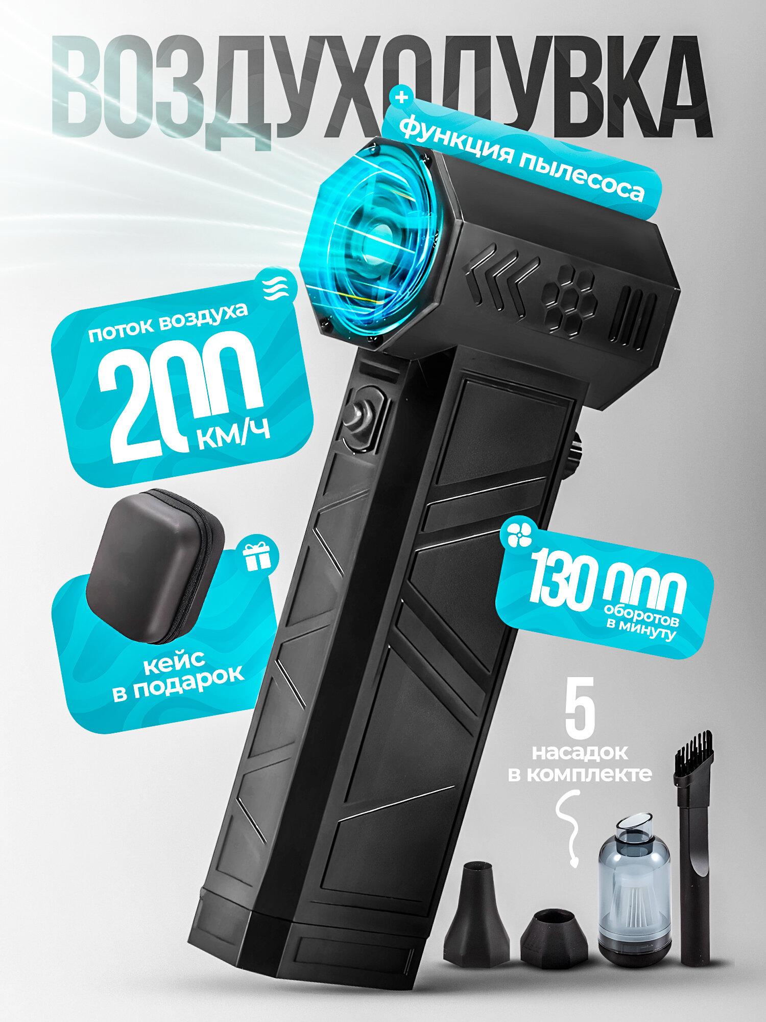 Сверхмощная воздуходувка для компьютера/электроники. Аккумуляторная, 51000об./мин, 68Вт