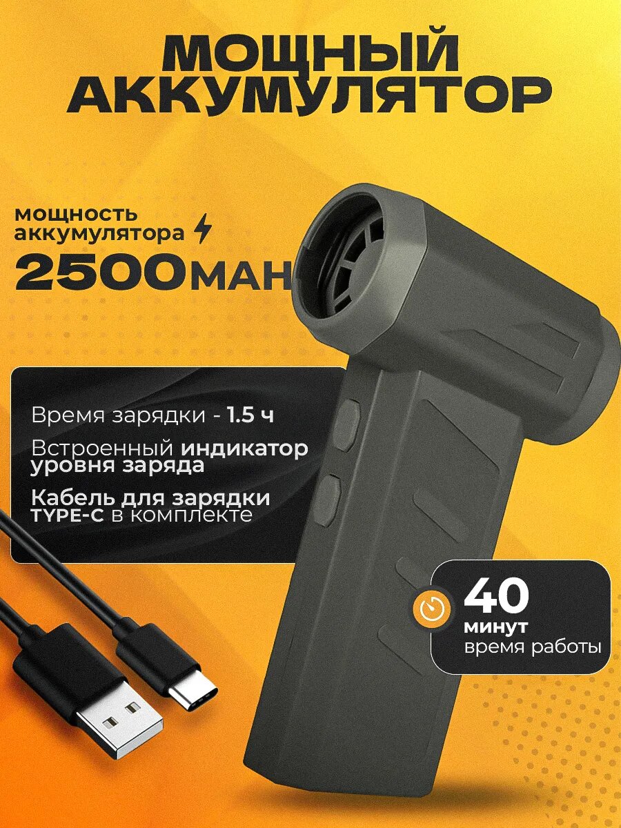 Сверхмощная воздуходувка для компьютера/электроники. Аккумуляторная, 51000об./мин, 68Вт