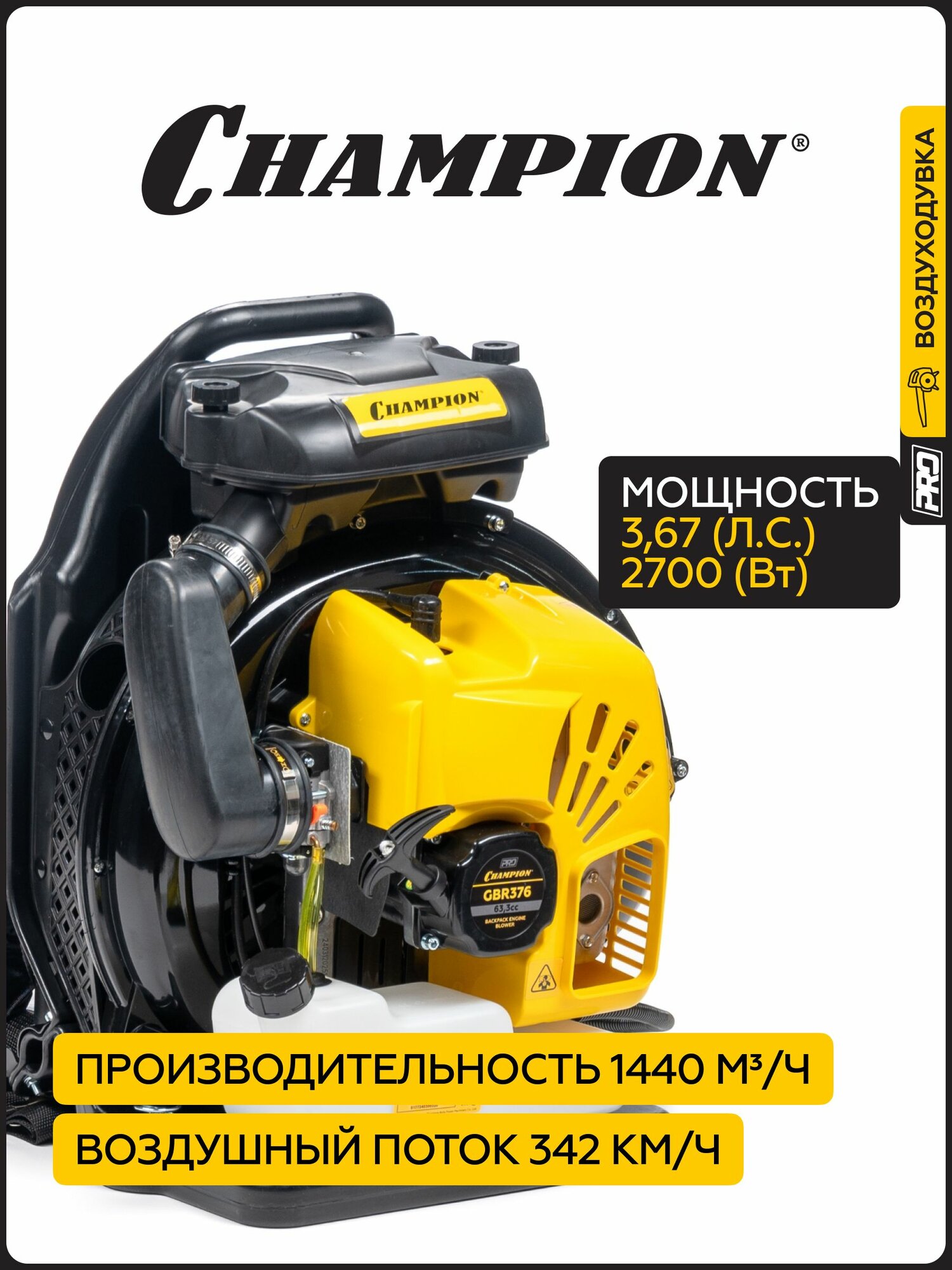 Воздуходувка бензиновая CHAMPION GBR376, 2,7 кВт, 1440 м3/ч, 95 м/с, 10,5 кг информация: