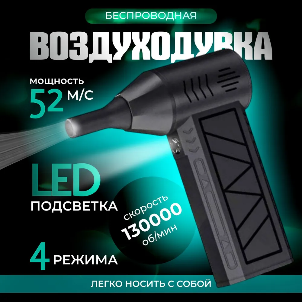 Сверхмощная воздуходувка для компьютера/электроники. Аккумуляторная, 51000об./мин, 68Вт
