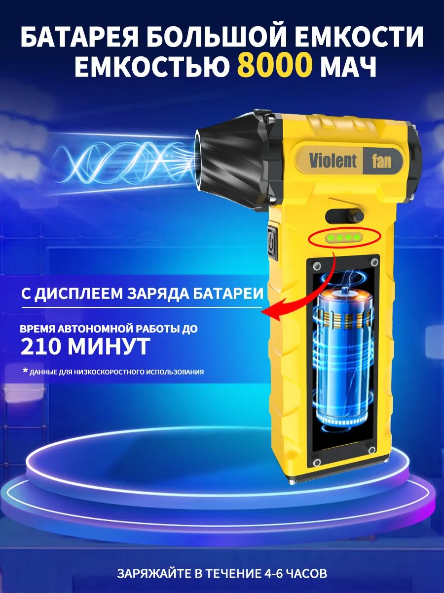 Сверхмощная воздуходувка для компьютера/электроники. Аккумуляторная, 51000об./мин, 68Вт