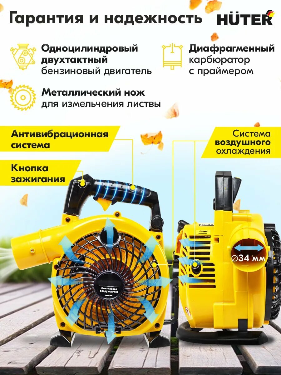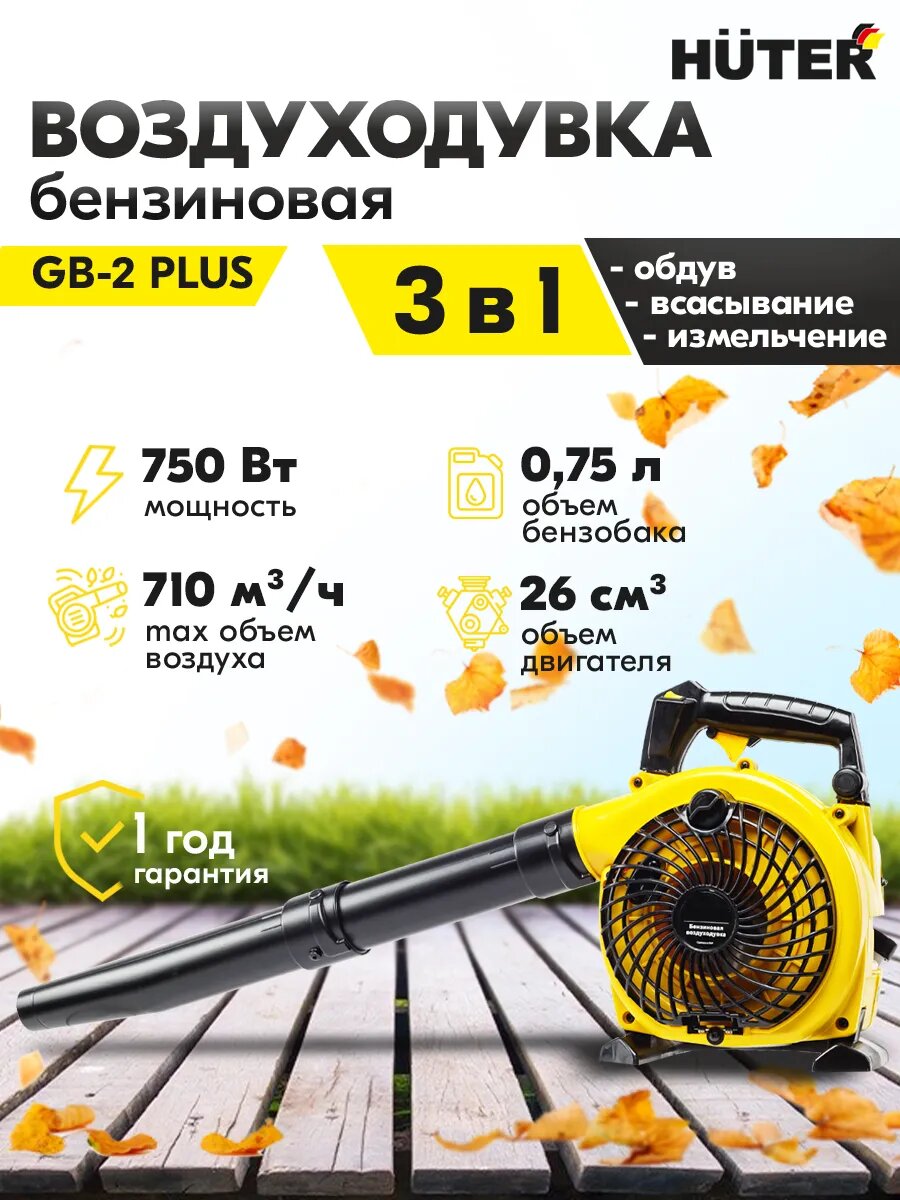 Отзывы на Воздуходувка садовая Huter GB-2 PLUS, бензиновая, 2-х тактная, 710м³/ч