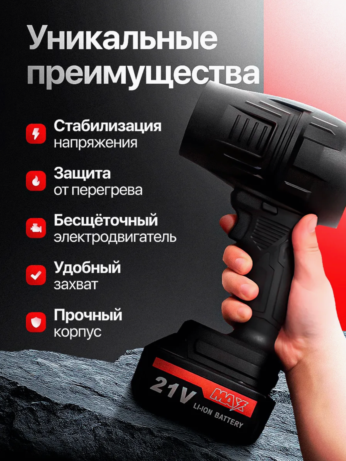 10 цен на Воздуходувка - портативный турбовентилятор, Воздуходувка аккумуляторная 21V, 2 АКБ, кейс