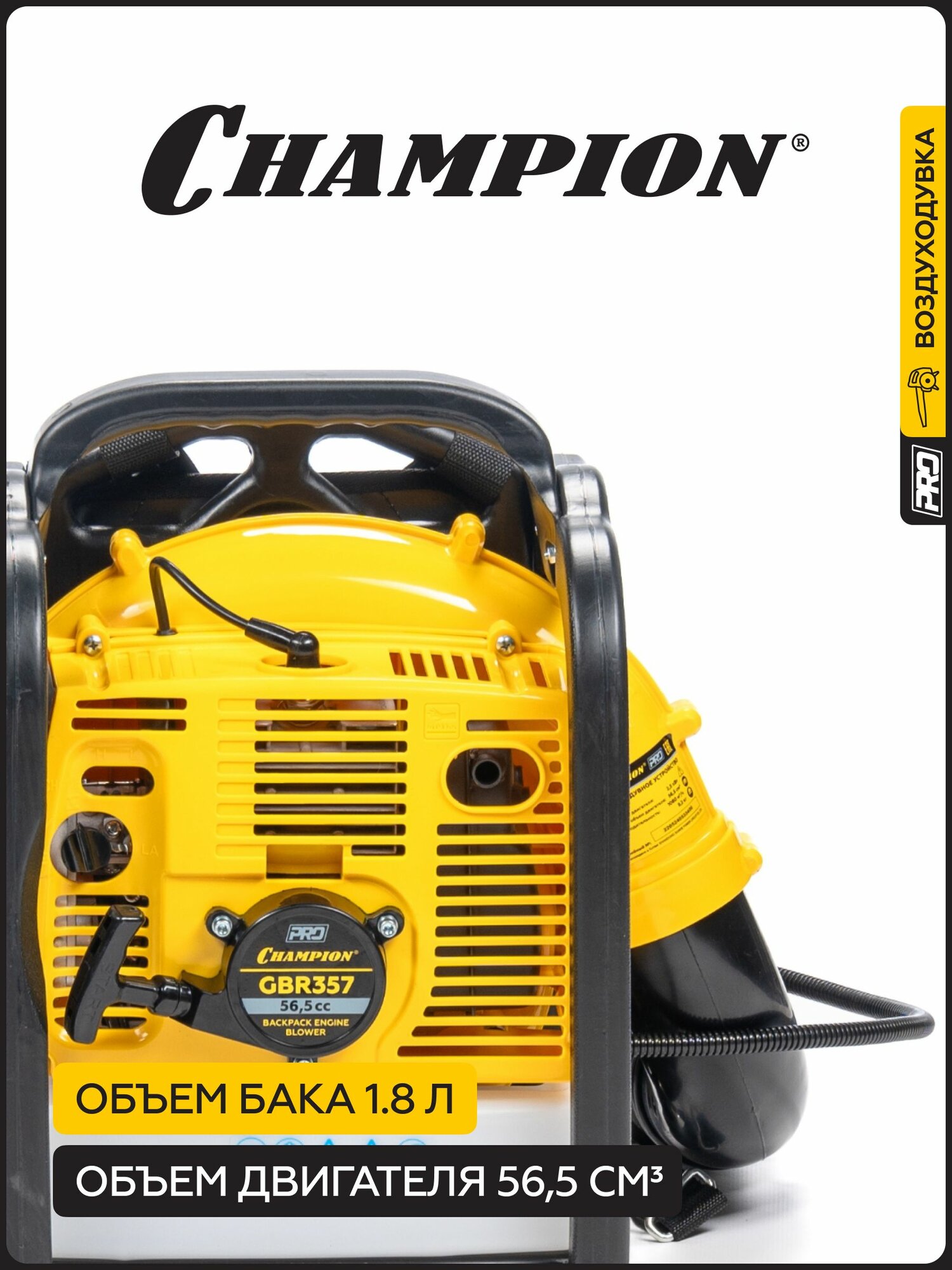 Воздуходувка бензиновая CHAMPION GBR357, 2,5 кВт, 1080 м3/ч, 99,4 м/с, 9,2 кг информация: