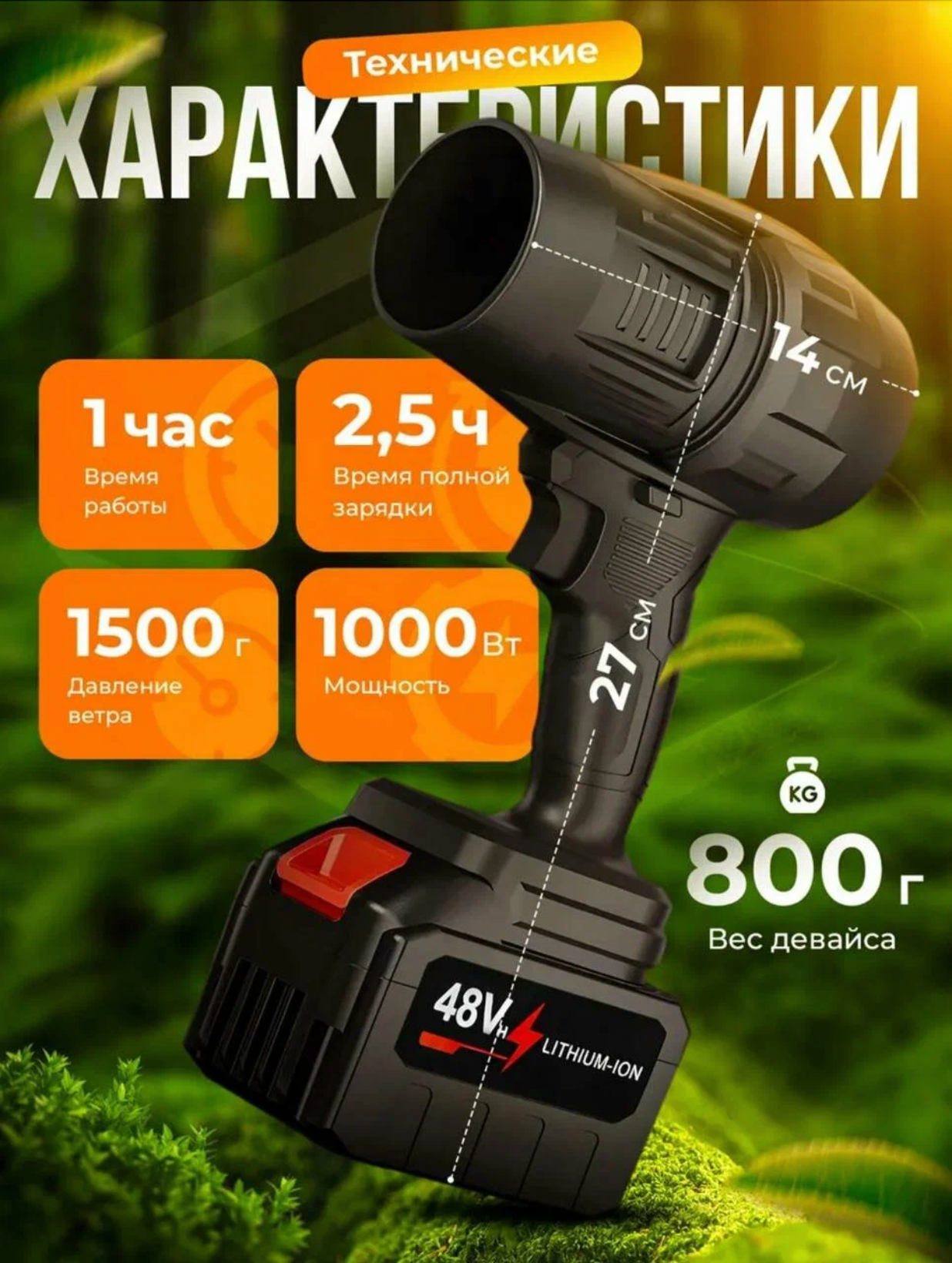 Воздуходувка аккумуляторная, для дома, для авто, универсальная, 3 режима, 2 акб, 1000вт информация: