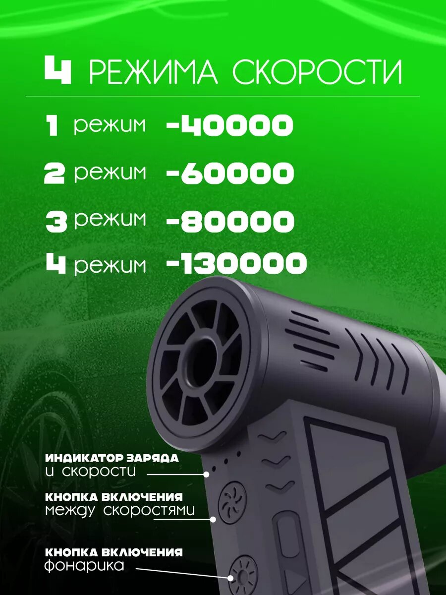 Сверхмощная воздуходувка для компьютера/электроники. Аккумуляторная, 51000об./мин, 68Вт