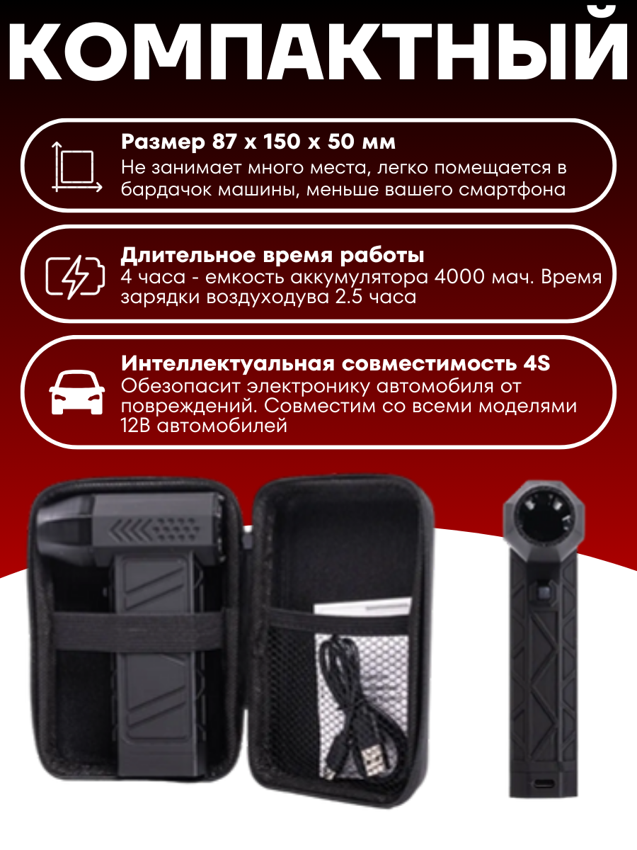 Сверхмощная воздуходувка для компьютера/электроники. Аккумуляторная, 51000об./мин, 68Вт