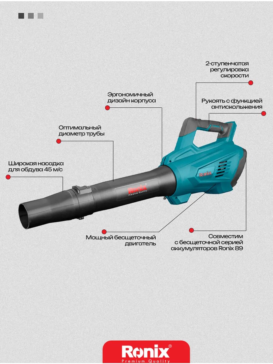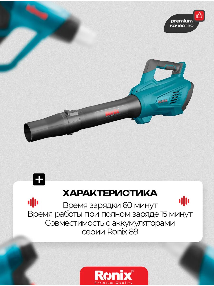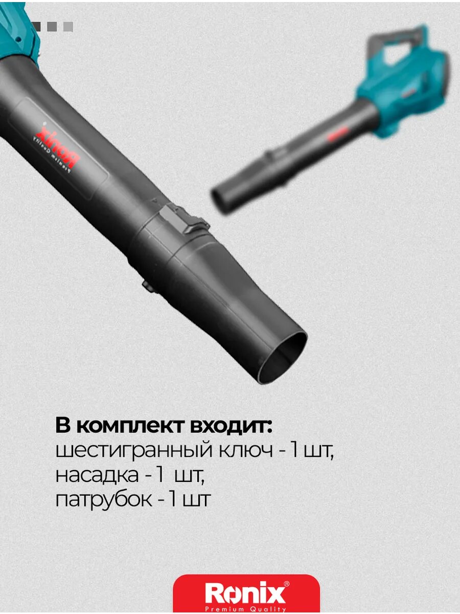 Воздуходувка аккумуляторная Ronix садовая 10000/15000 об. мин (2 ступени) информация: