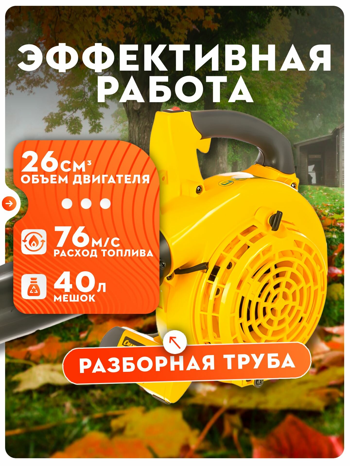Отзывы на Воздуходувка-пылесос бензиновая Champion 1.0л/с GBV326S 0.75kWt 40л