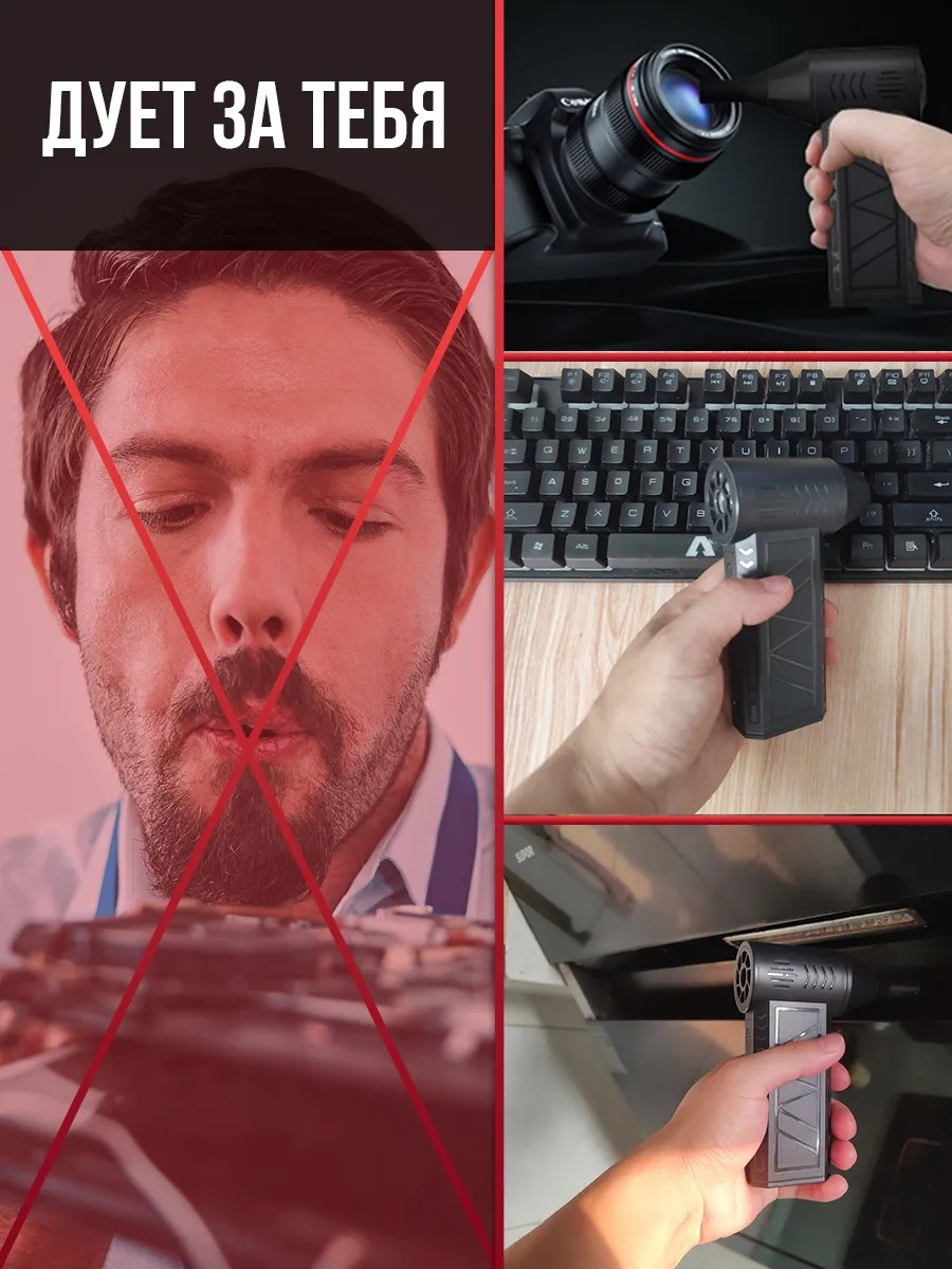 Сверхмощная воздуходувка для компьютера/электроники. Аккумуляторная, 51000об./мин, 68Вт