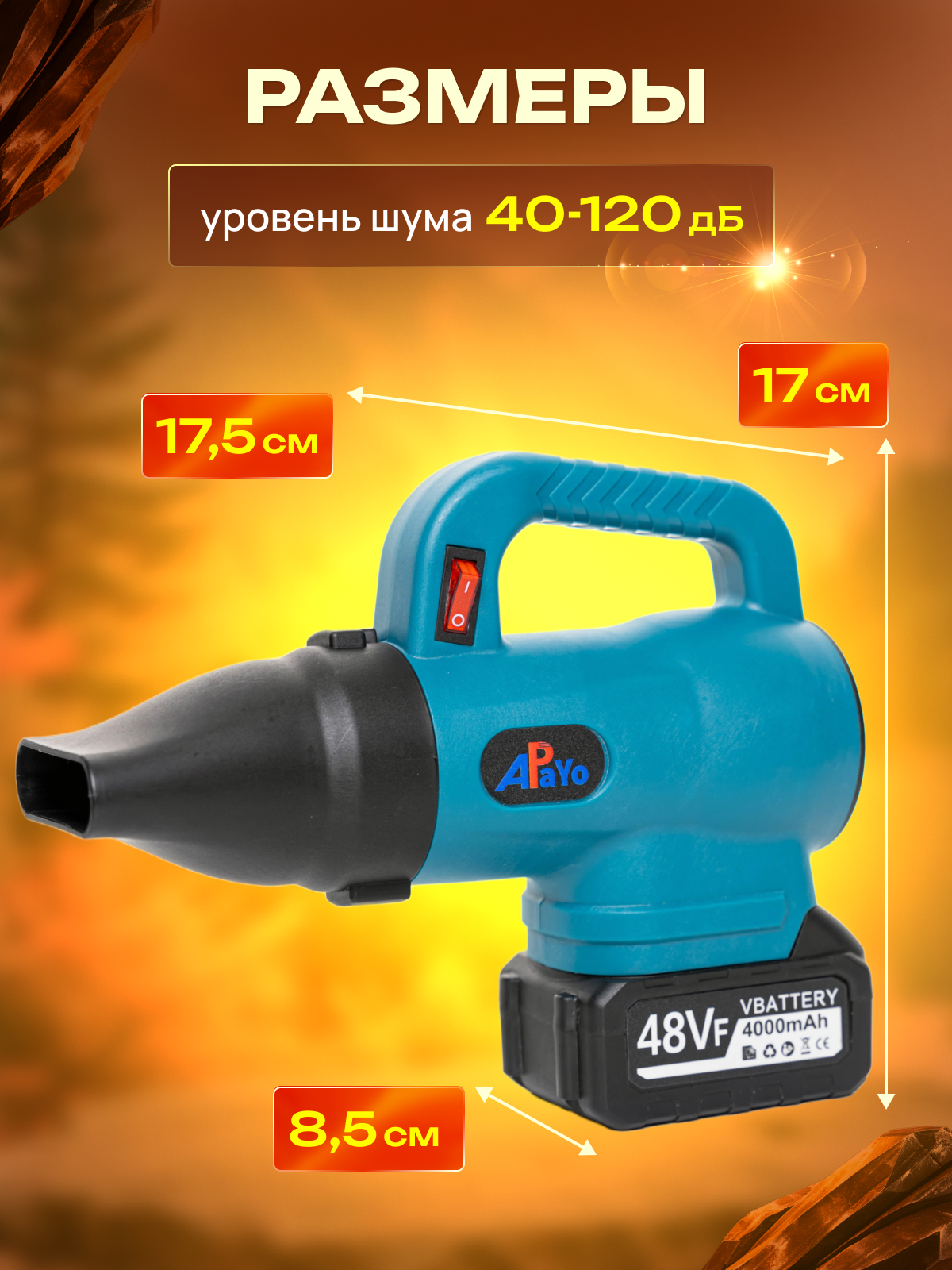 Воздуходувка аккумуляторная ApaYo Турбовентилятор садовый информация: