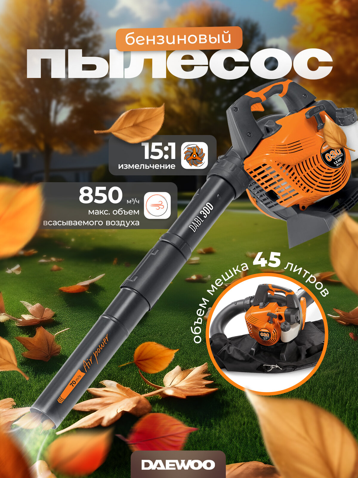 Бензиновый садовый пылесос Daewoo Power Products DABL 300 1.3 л. с информация: