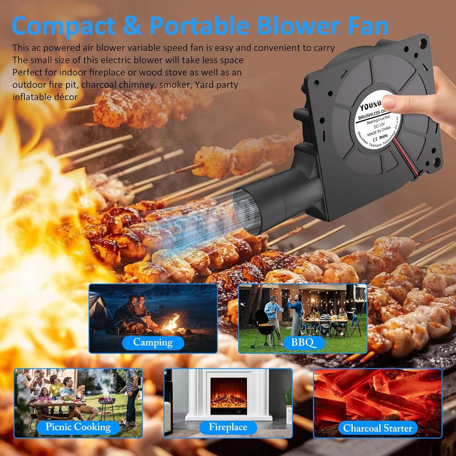 YOUNUON Вентилятор для барбекю 12В, Fan with EU Plug, Фиксированных цветов, Черный информация: