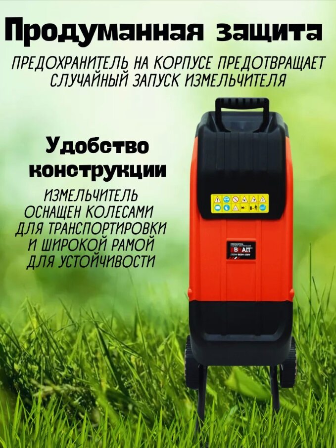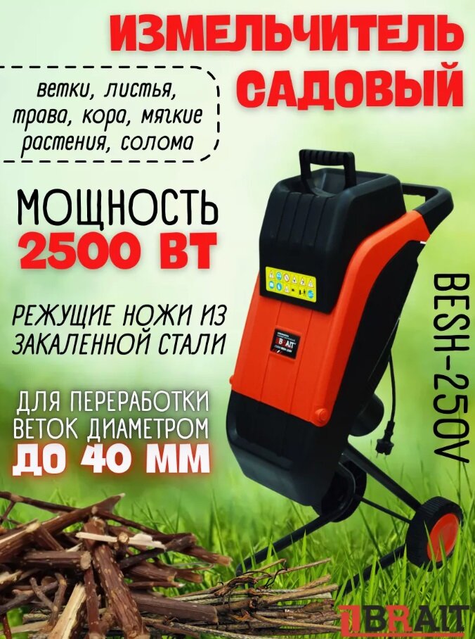 Измельчитель садовый электрический BRAIT BESH-250V 2500 Вт, диаметр веток 40мм для сада и дачи информация: