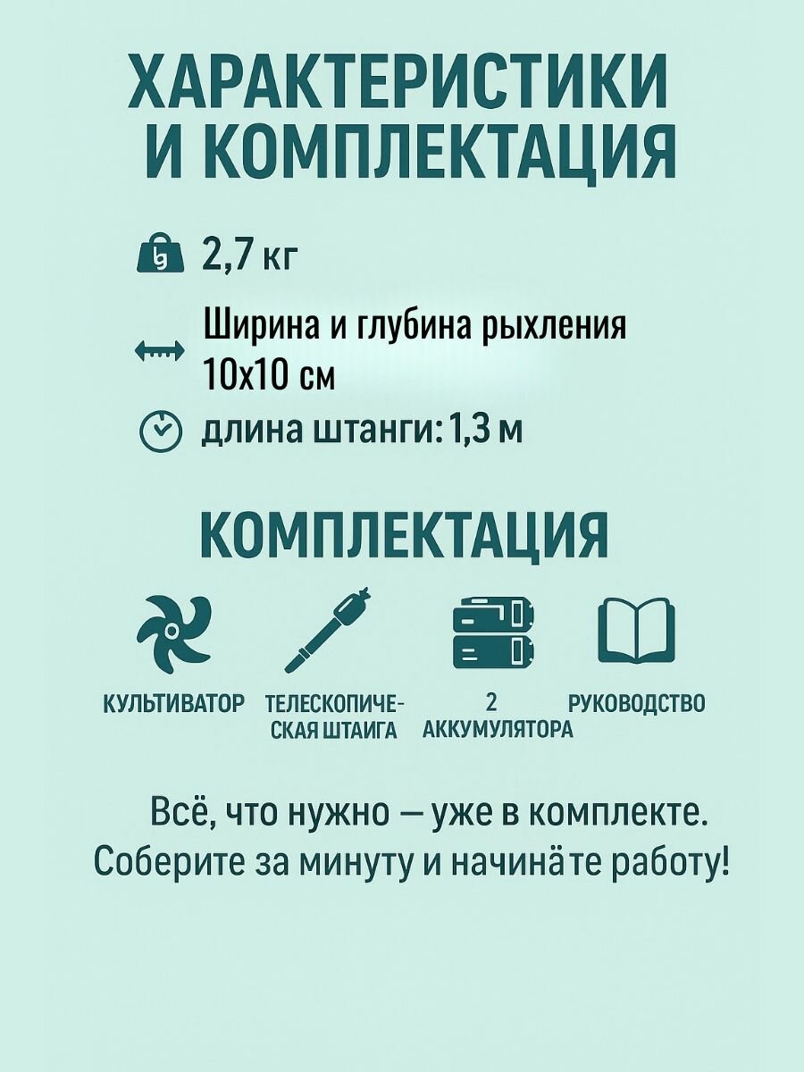 2 в 1 культиватор аккумуляторный для прополки грядок со штангой,235 об/мин информация: