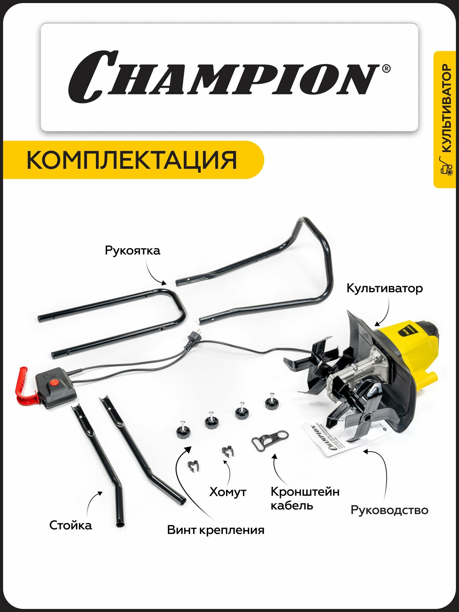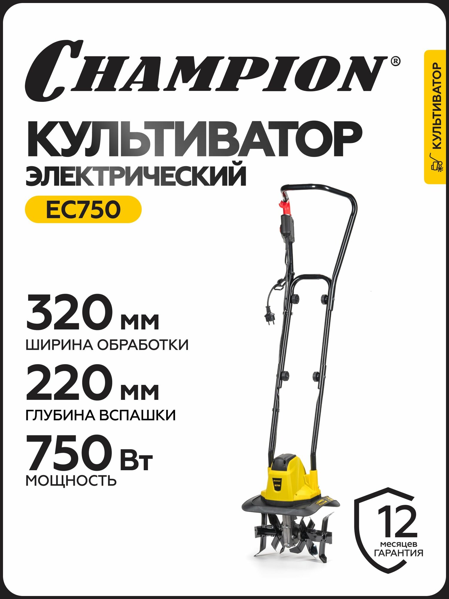 Культиватор электрический CHAMPION EC750, 0,75 кВт, D 20 см, 32 см информация: