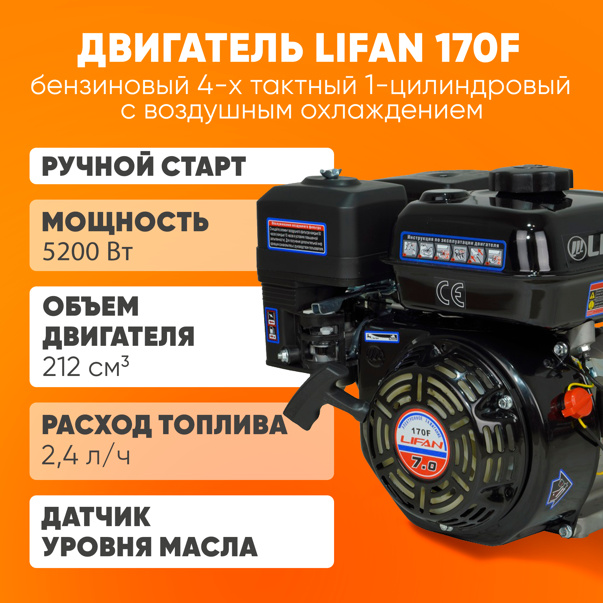 Мотоблок бензиновый Habert HMN-223 New (Lifan 170F), 7лс, колёса внедорожные 19*7-8, КПП 4 вперед 2 назад информация: