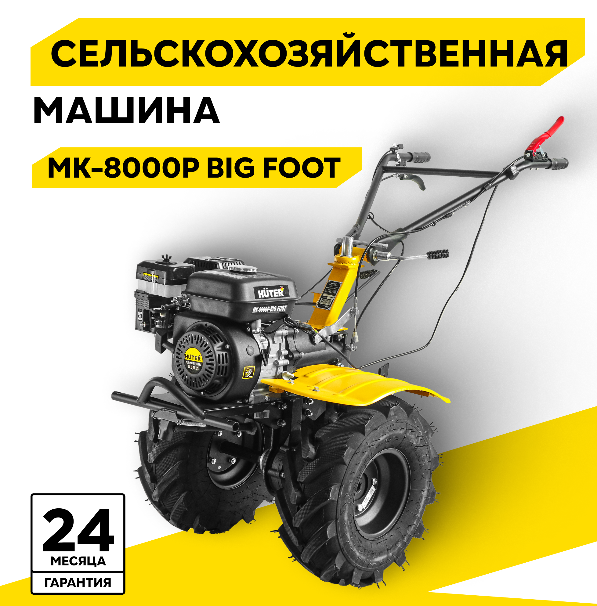 Сельскохозяйственная машина HUTER МК-8000P BIG FOOT, 8 л. с, четырехтактный, бензин, бак – 3.6 л, ширина – 100 см информация: