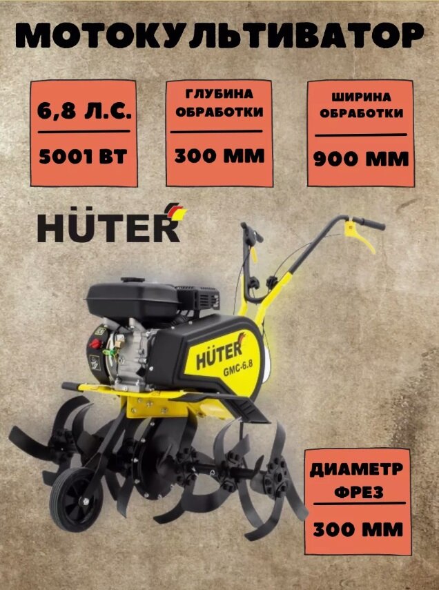 Культиватор бензиновый Huter GMC-6.8, 6.8 л. с. информация: