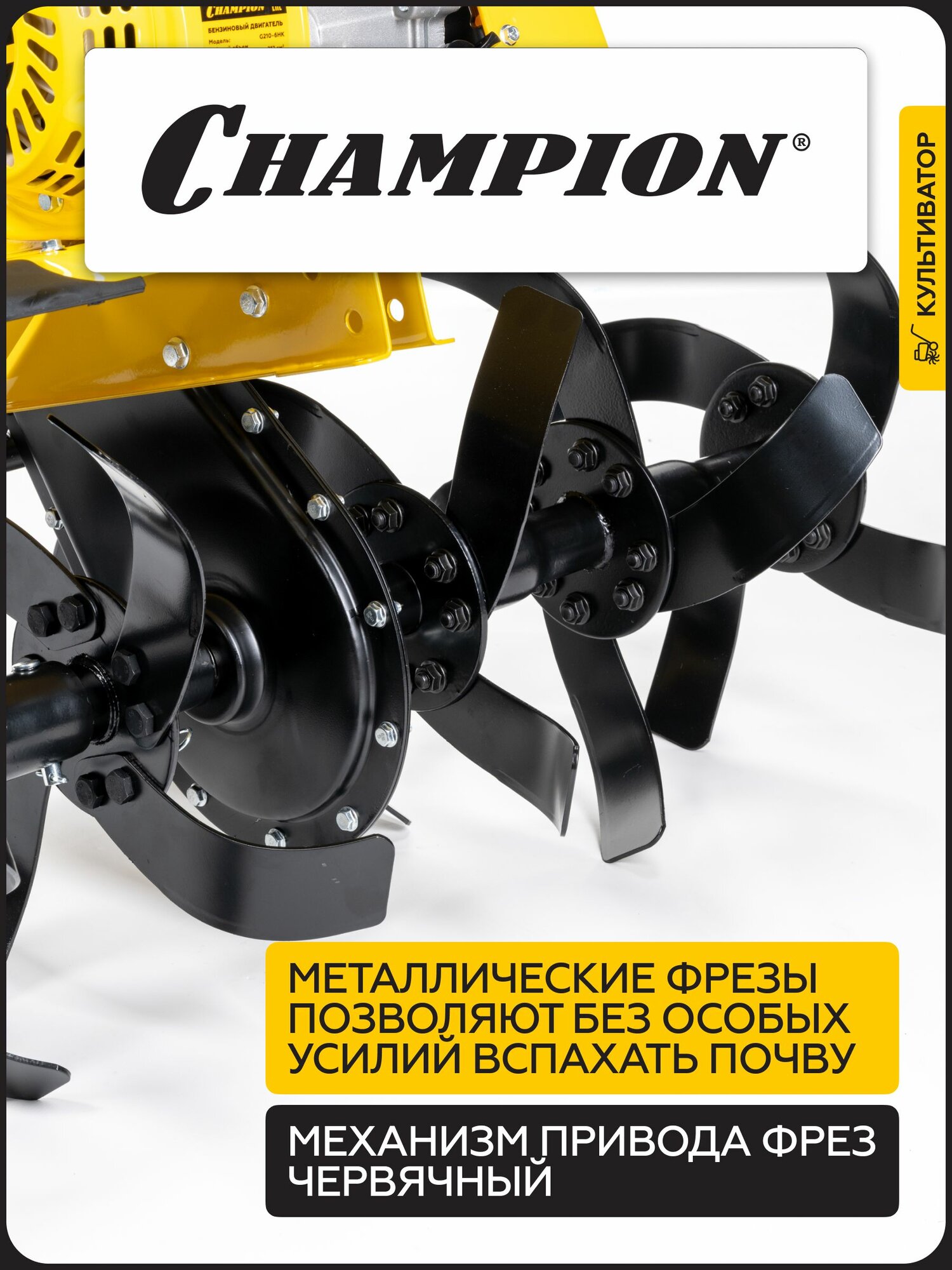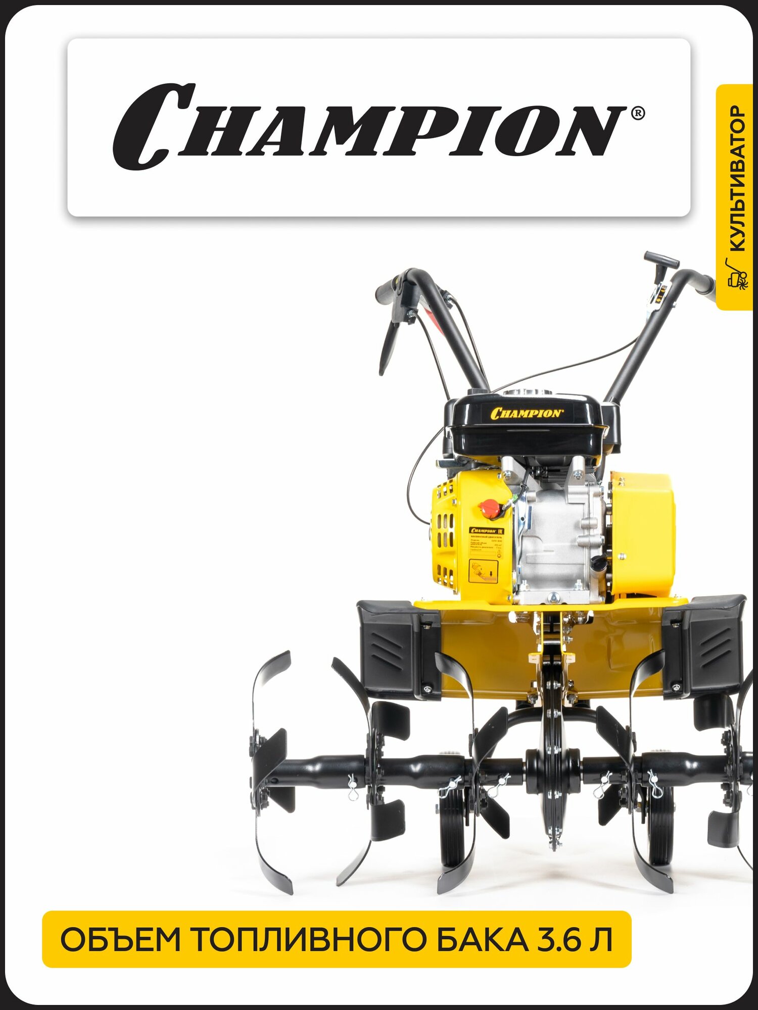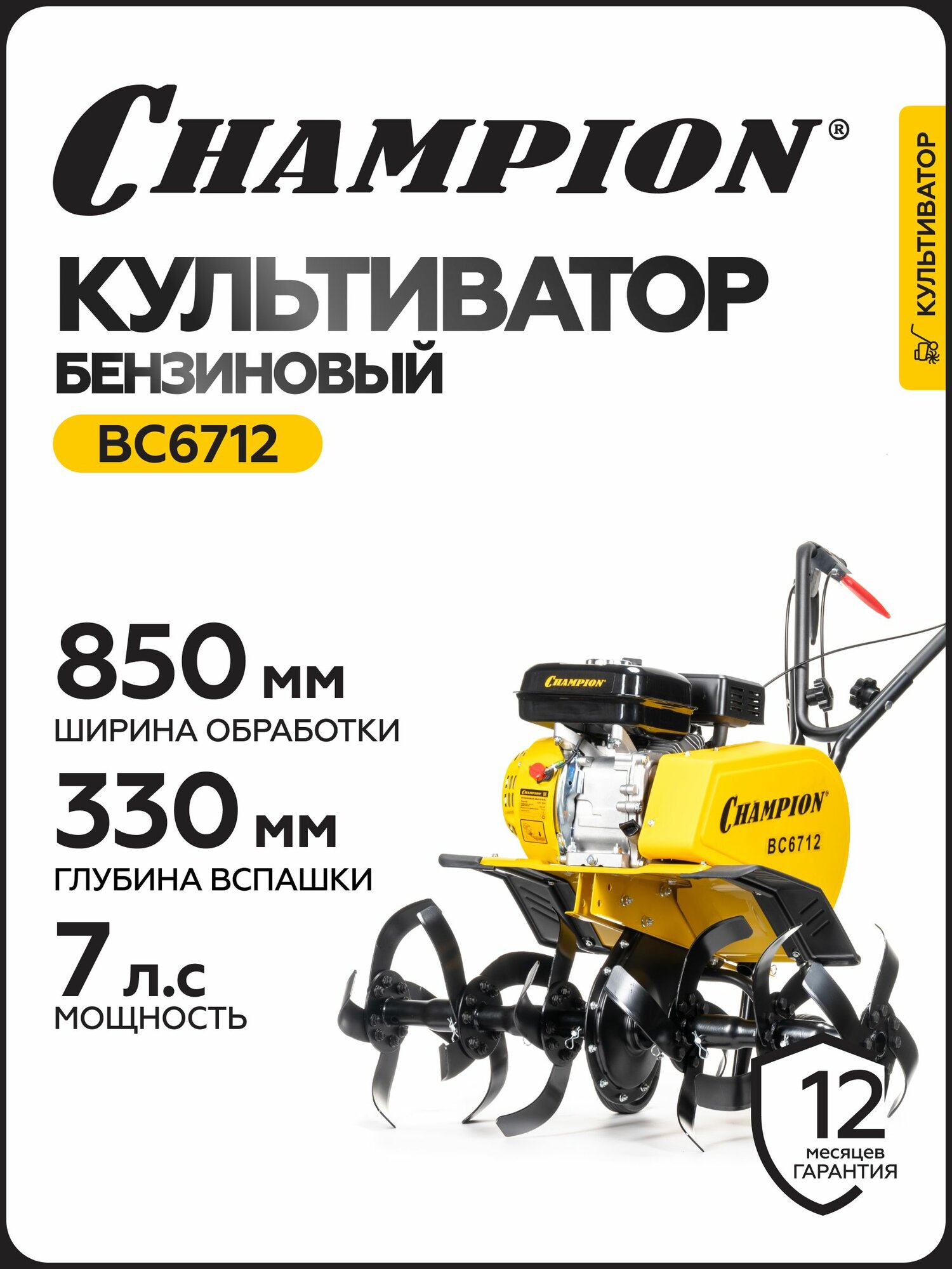 Культиватор бензиновый CHAMPION ВC6712, 5,15 кВт, 1F/ 1R, D 33 см, 30-55-85 см/ Мотокультиватор бензиновый 4 тактный информация: