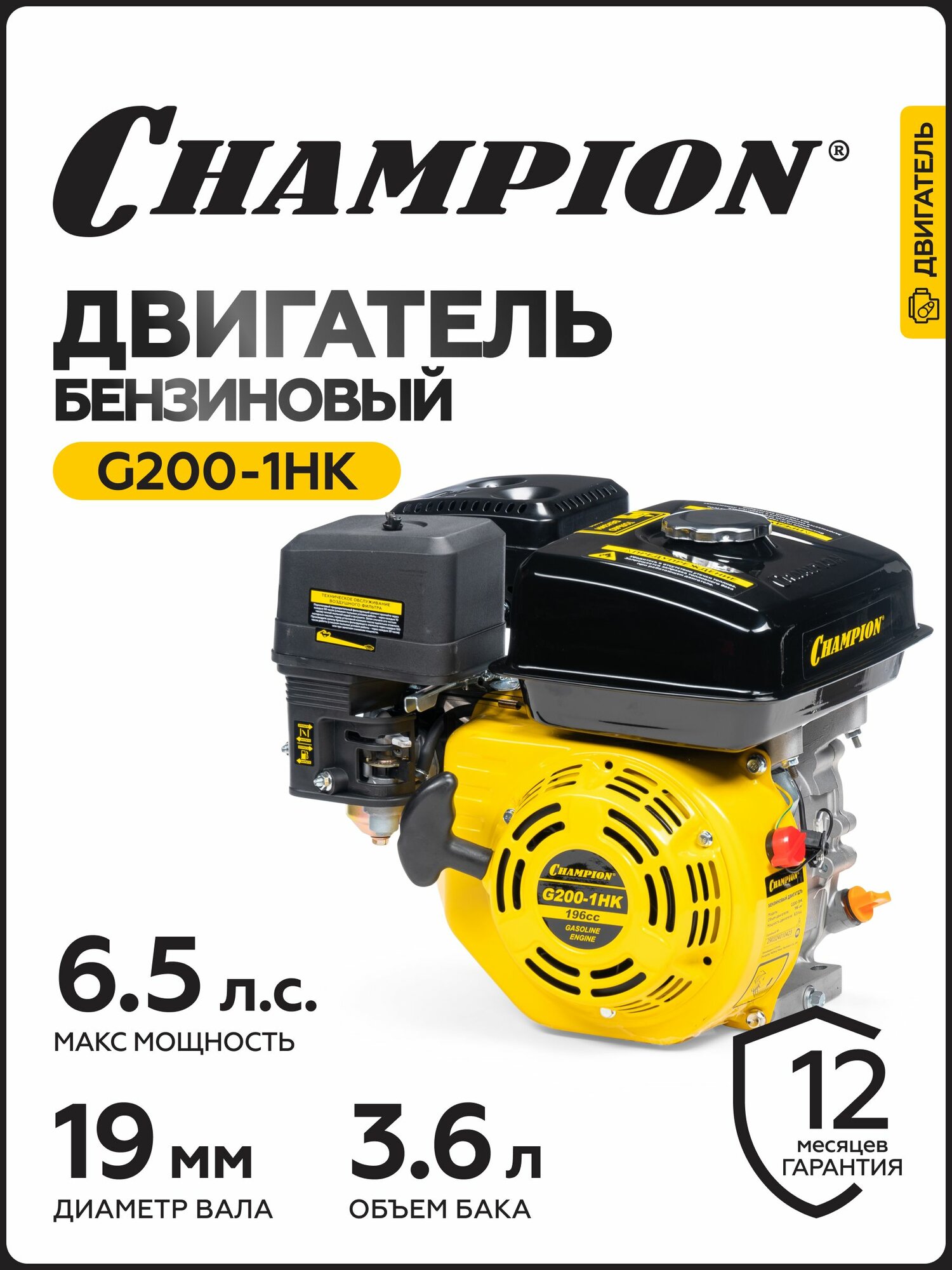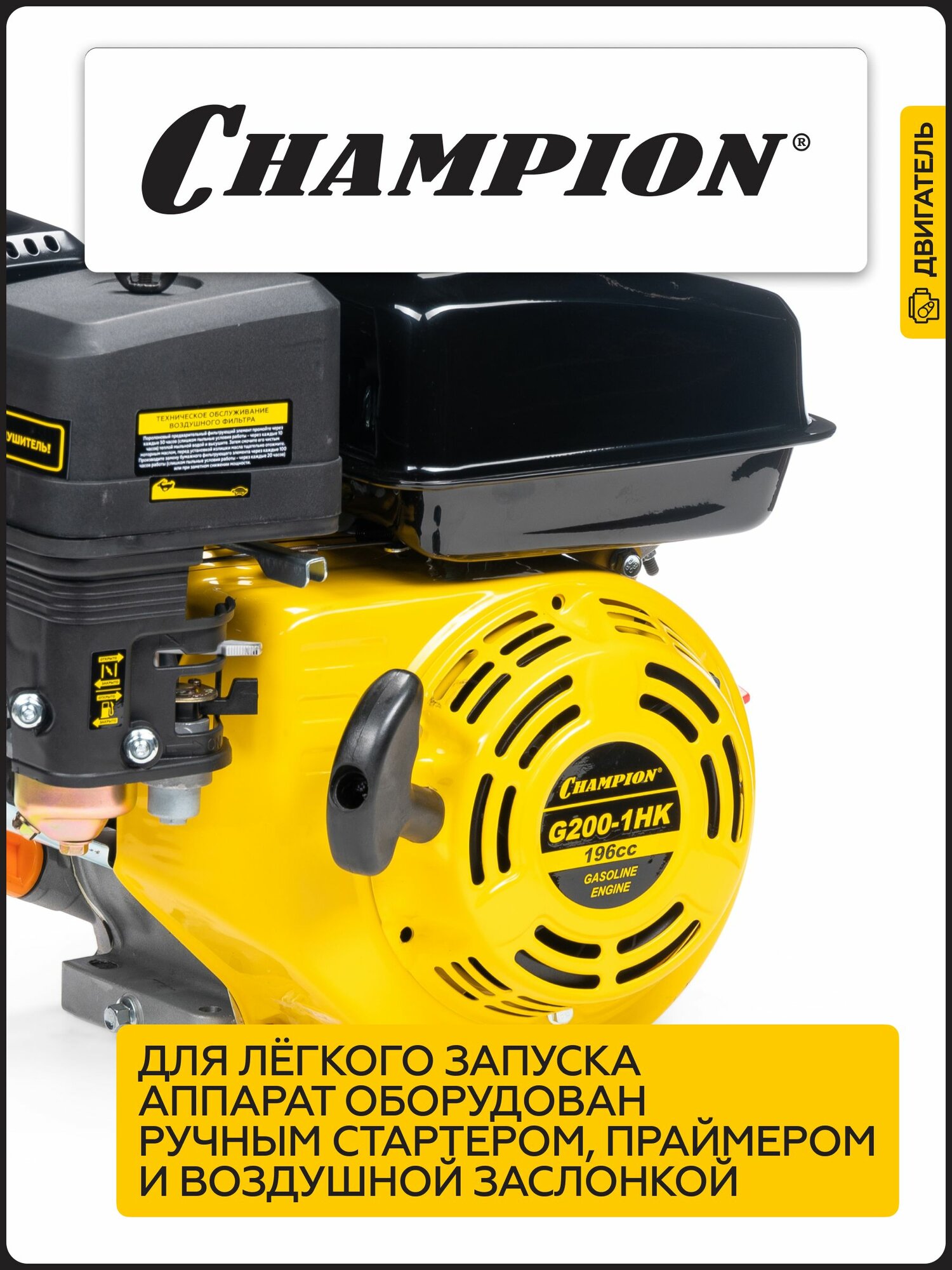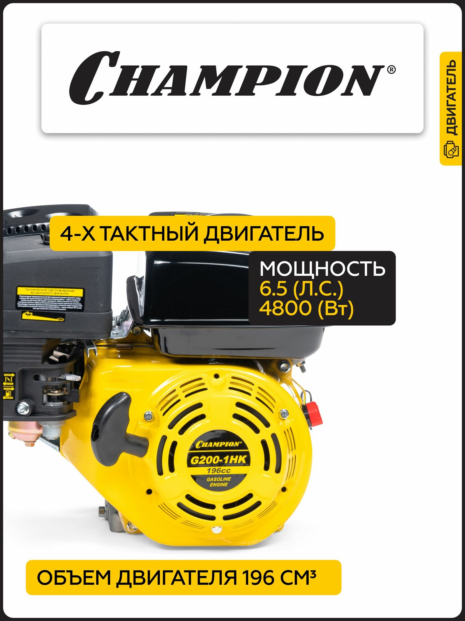 Двигатель бензиновый четырехтактный CHAMPION G200-1HK, 4,8 кВт, 196 см3, ручной запуск информация: