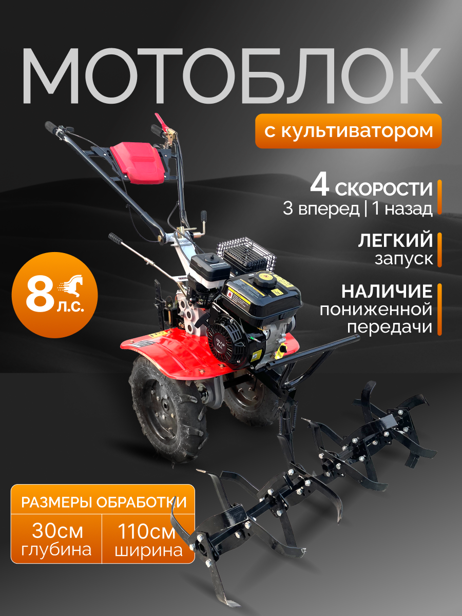 Мотоблок бензиновый на колесах (3 вперед, 1 назад) 8 л. с. информация: