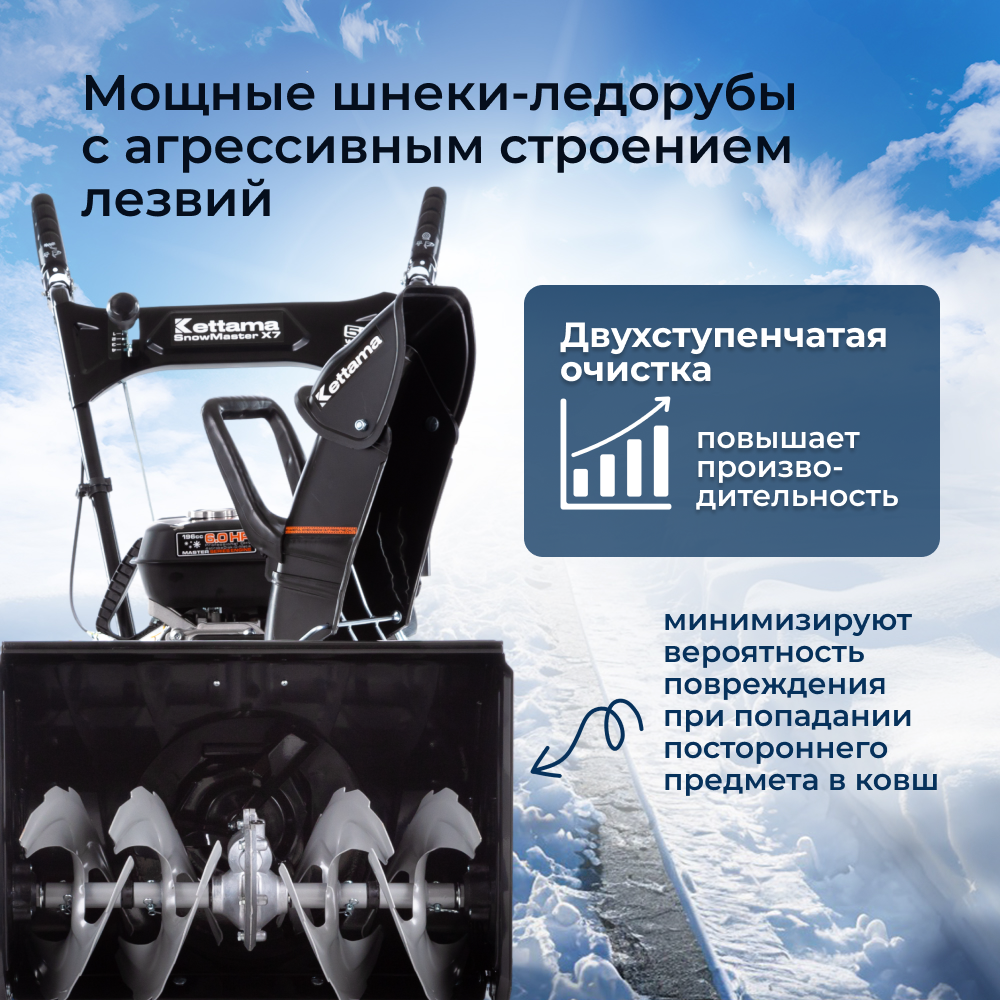 Снегоуборщик бензиновый Kettama Snow Master X7, 6л. с, дальность выброса 11м информация: