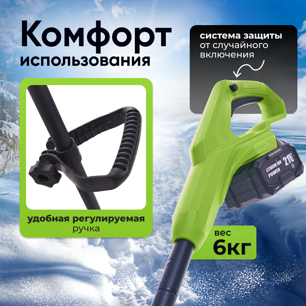Снегоуборщик аккумуляторный CSP002 Max, 2*4 ач, зеленый / Снегоуборочная машина информация: