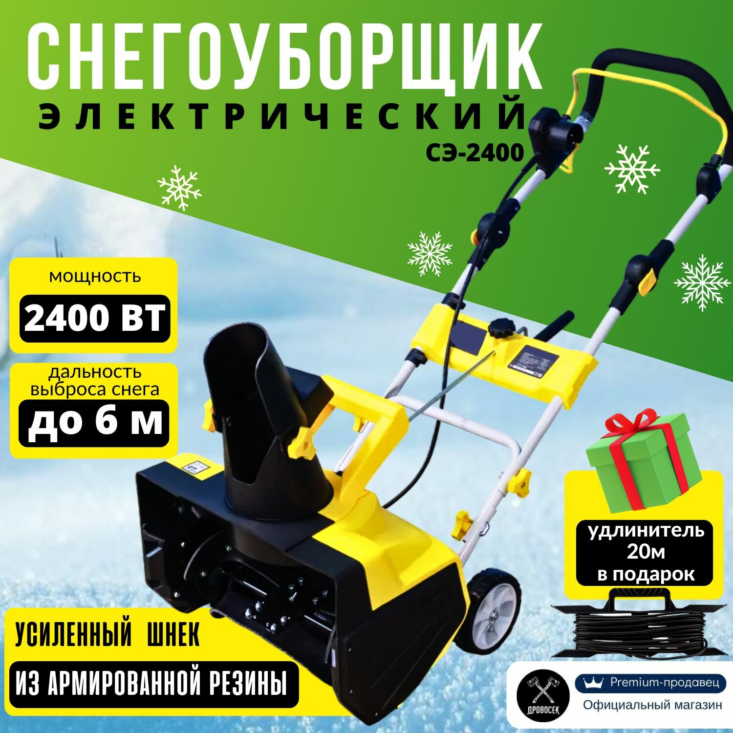 10 цен на Снегоуборщик Варяг СЭ-2400 электрический (2400Вт, 6м) снегоуборочная машина, удлинитель 20 м - в подарок
