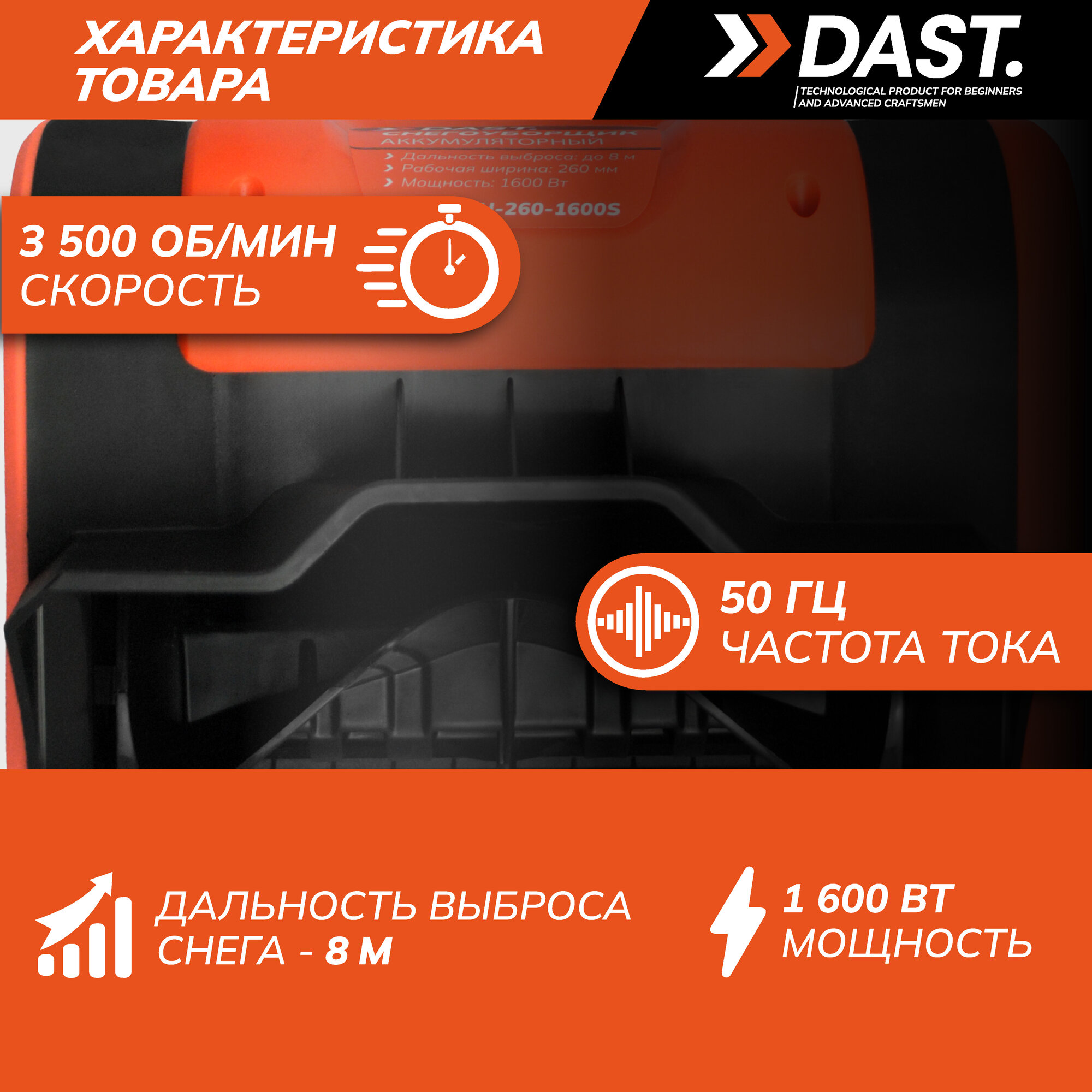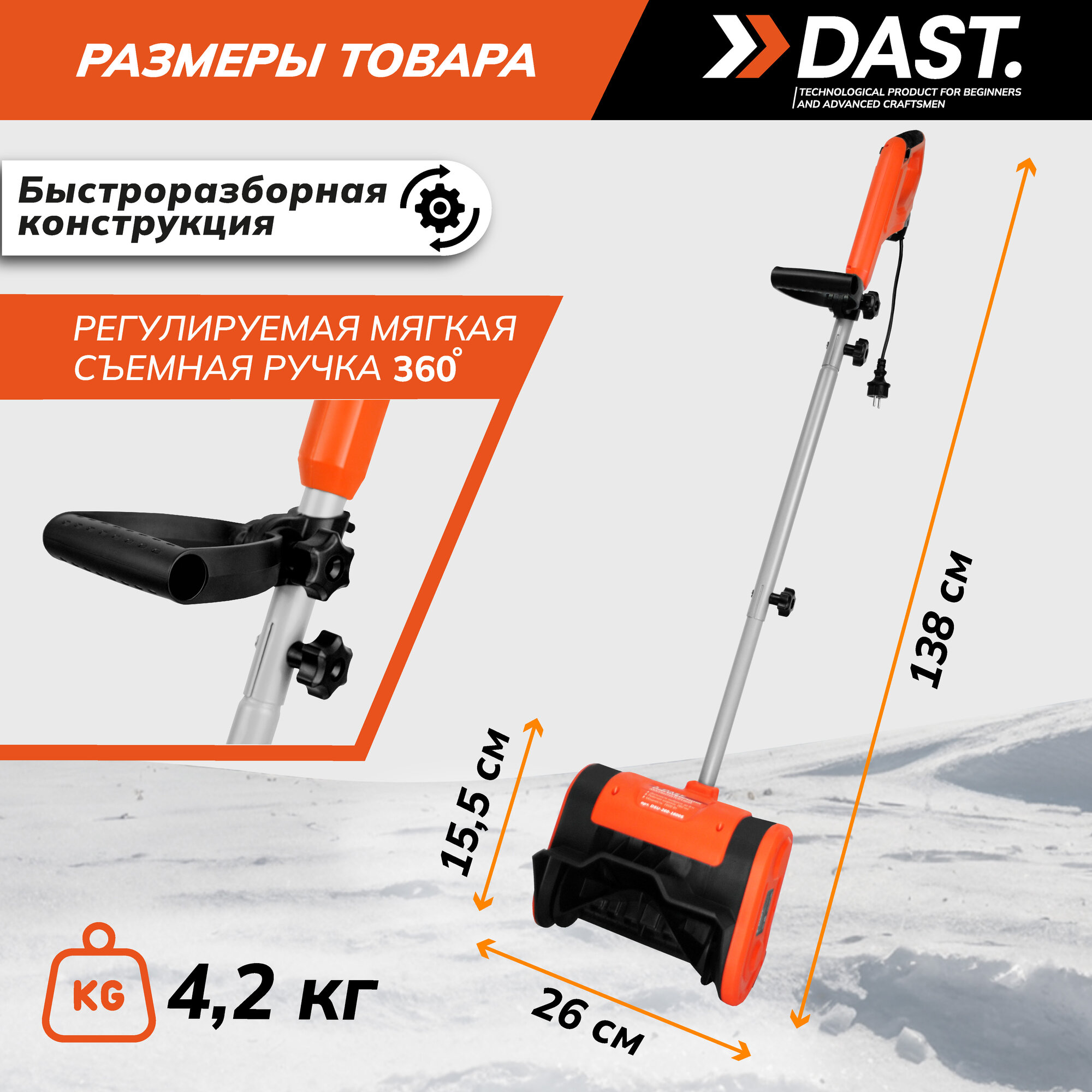 Снегоуборщик электрический DAST 1600 Вт, ковш 26x15.5 см, снегоуборочная лопата информация: