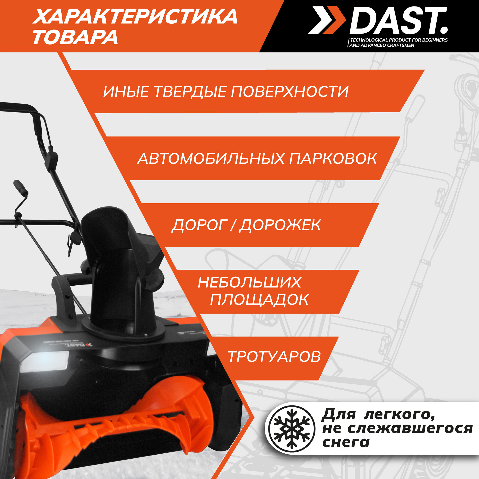 Снегоуборщик электрический DAST 2700 Вт, широкий ковш 57 см. с фарами, 3200 об/мин, ременной привод информация: