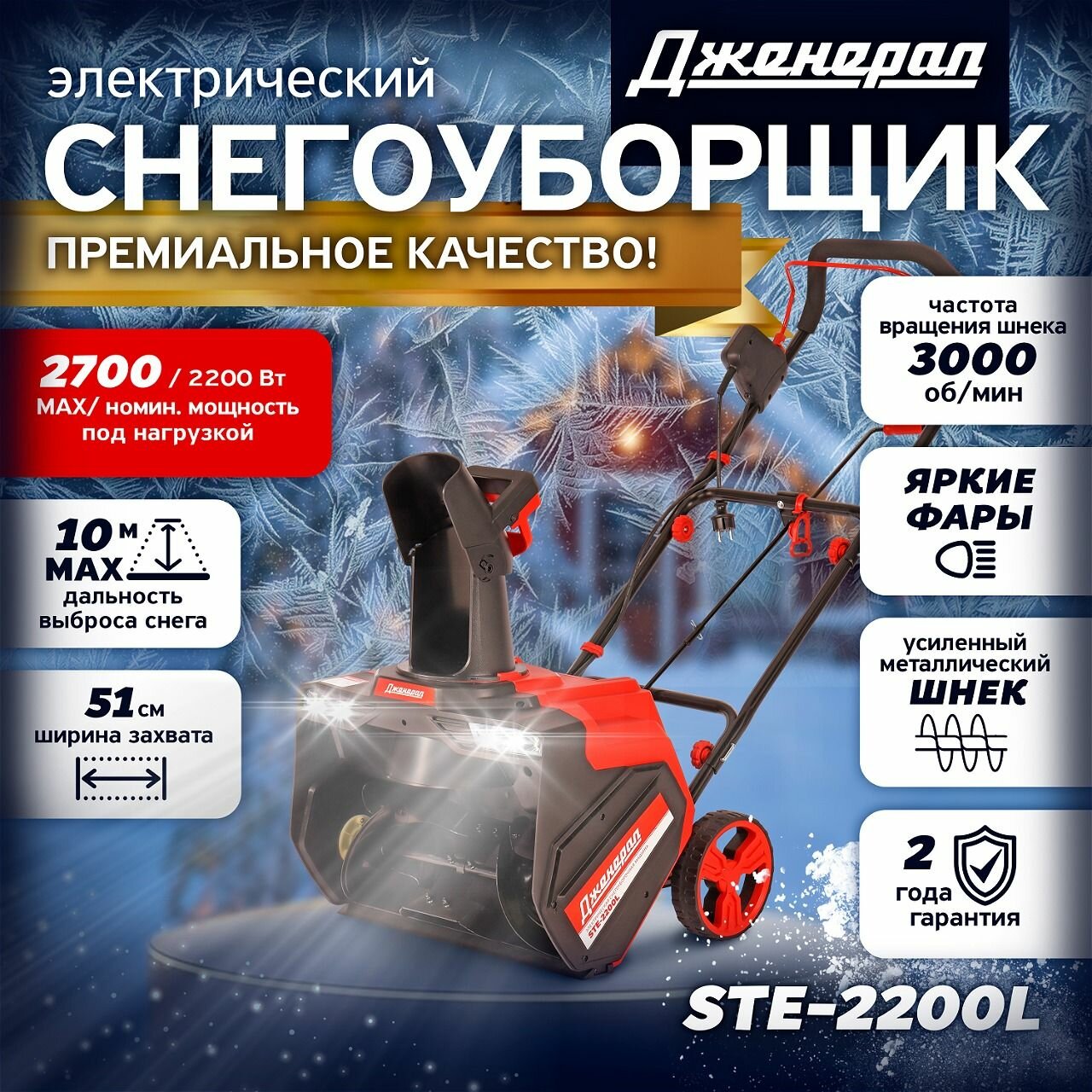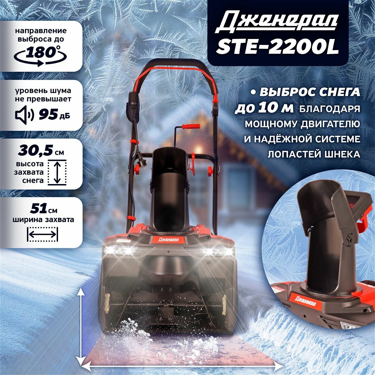Снегоуборщик электрический Дженерал STE-2200L Снегоуборочная машина с металлическим шнеком, ковш 51*30.5 см информация: