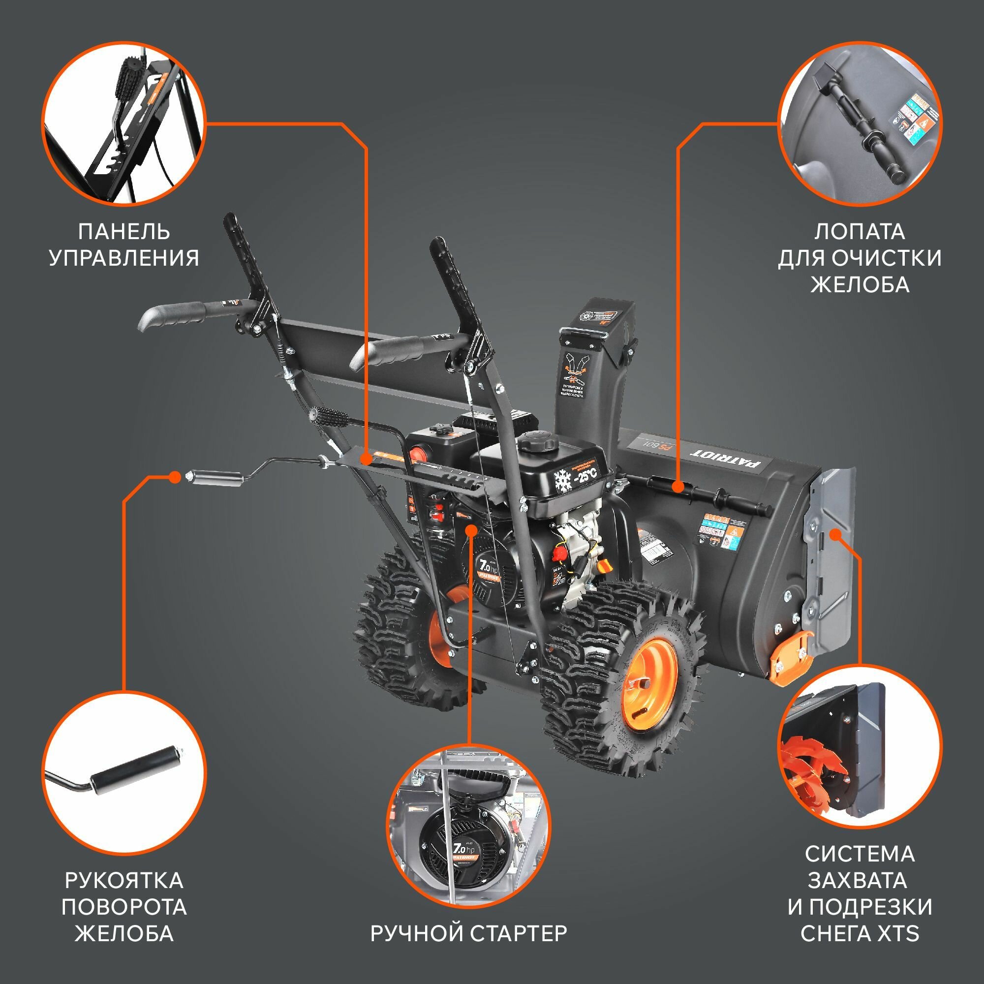 Снегоуборщик бензиновый PATRIOT PS 601, 7лс, выброс снега 10м, ковш 66см, колеса Winter Extreme информация: