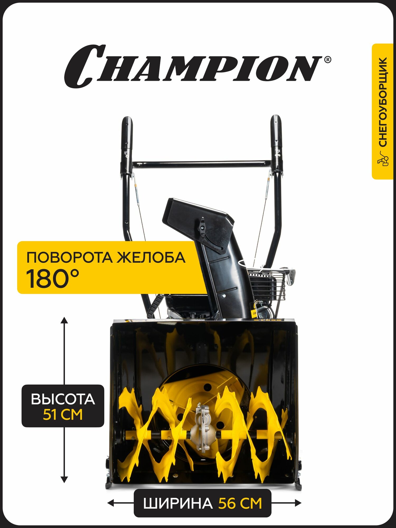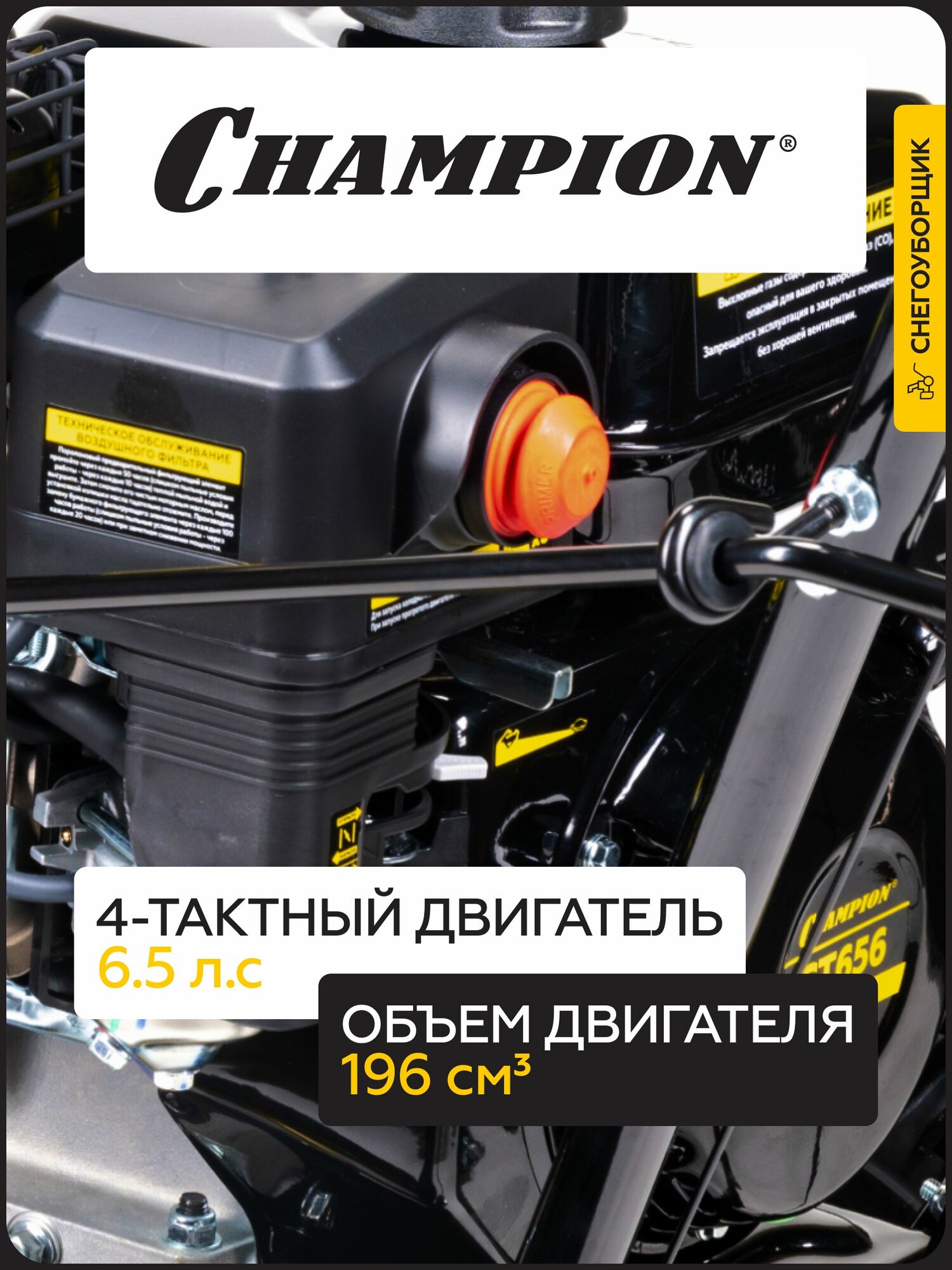 10 цен на Снегоуборщик CHAMPION ST656 (6,5лс 56см 5F/2R колеса 3,6л 72кг руч. стартер)